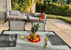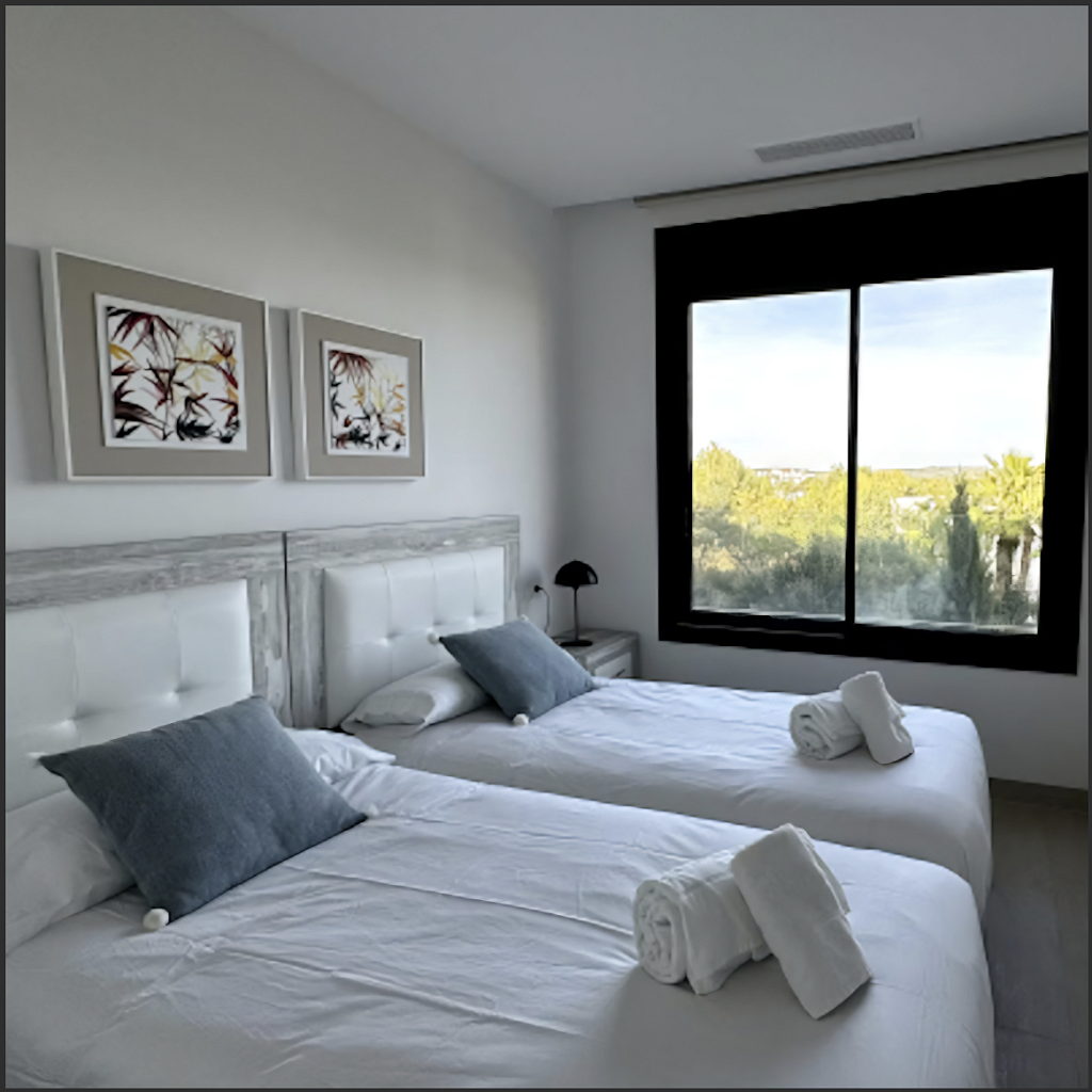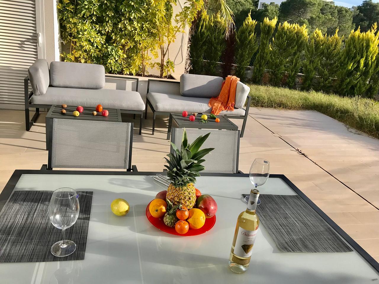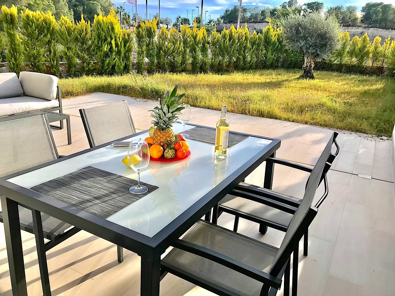 Планировка продумана до мелочей: три просторные спальни и две ванные комнаты, включая приватную ванную в главной спальне. Просторная и наполненная светом гостиная плавно переходит на большую террасу и в собственный зелёный сад с кипарисами, пальмами и оливковым деревом — идеальное место для отдыха и приёма гостей.