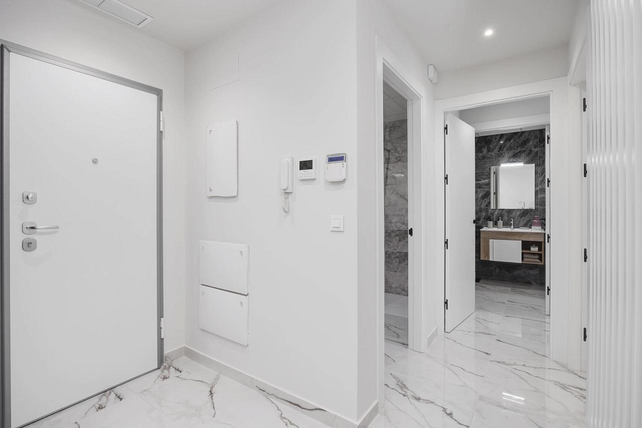 Новый жилой комплекс в Сан-Мигель-де-Салинас в двух шагах от центра города. Просторные квартиры с впечатляющими удобствами Этот недавно построенный жилой комплекс в Сан-Мигель-де-Салинас предлагает современные квартиры с 2 спальнями и просторными террасами, аккуратно распределенные на семи этажах. Закрытый комплекс предлагает первоклассные удобства, включая отдельные бассейны для взрослых и детей, пышные зеленые зоны, детскую игровую площадку и зону петанки. Привилегированное расположение на побережье Коста-Бланка Расположенная в очаровательном городке Сан-Мигель-де-Салинас, эта урбанизация занимает стратегически важное место на побережье Коста-Бланка. Она находится в нескольких минутах ходьбы от центра города, где вы найдете все необходимые удобства для повседневной жизни, включая магазины, рестораны и медицинские центры. Недвижимость находится в нескольких минутах езды от нескольких достопримечательностей: Поля для гольфа Las Colinas и Campoamor: всего в 7 км, идеально подходит для любителей гольфа. Пляжи Ориуэла Коста и Торревьеха: расположены примерно в 10 км от резиденции и предлагают прекрасные песчаные берега. Торговые центры: Бульвар Зения, популярное место для шопинга, находится всего в 9 км. Аэропорт Аликанте: в 50 км. Аэропорт Мурсия-Корвера: в 55 км, идеально подходит для регионального сообщения. Высококачественные характеристики Каждая квартира спроектирована с учетом современных требований к отделке и функциональности: Полностью оборудованные кухни с бытовой техникой. Моторизованные жалюзи. Охраняемая входная дверь. Горячая вода за счет аэротермального отопления. Полностью установленные канальные кондиционеры. ПРЕДЛОЖЕНИЕ: В первые проданные квартиры включена мебель. Кроме того, все квартиры включают выделенное парковочное место. О Сан-Мигель-де-Салинас Сан-Мигель-де-Салинас - живописный муниципалитет в регионе Вега-Баха-дель-Сегура, входящий в состав Валенсийского сообщества. Расположенный недалеко от границы с Мурсией, поселок предлагает потрясающие виды на лагуны Торревьеха и Ла Мата, а также тихую семейную атмосферу. Ваш новый дом ждет Если вы ищете дом для отдыха или для постоянного проживания, этот новый комплекс в Сан-Мигель-де-Салинас сочетает в себе роскошь, комфорт и непревзойденное местоположение. Свяжитесь с нами сегодня, чтобы договориться о просмотре и сделать первый шаг к недвижимости вашей мечты на побережье Коста-Бланка. 271