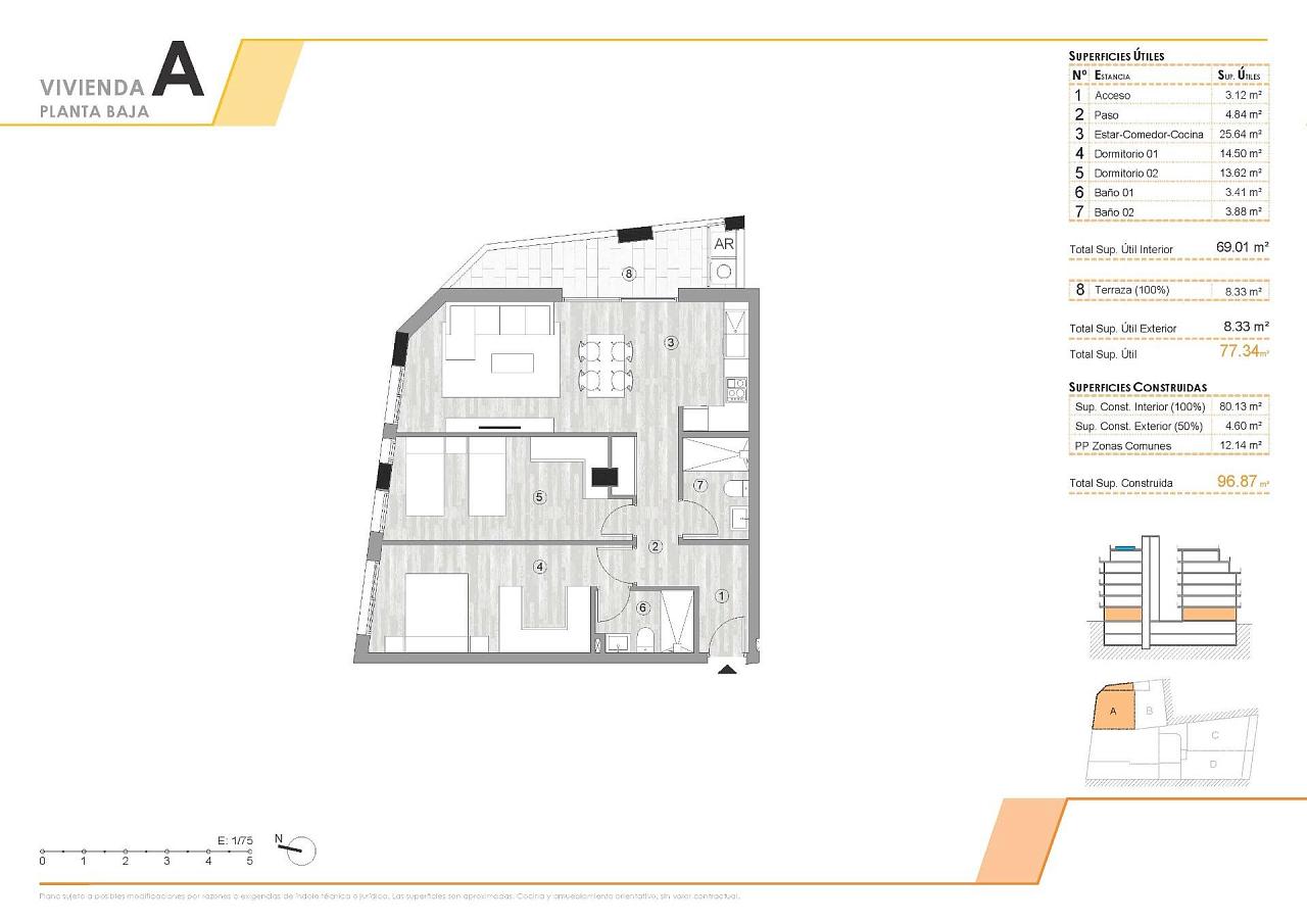 Новые апартаменты в центре Торревьехи Всего в 400 м от пляжа Плайя-дель-Кура Выгодное расположение в центре Торревьехи Этот новый жилой комплекс имеет выгодное расположение в центре Торревьехи, всего в 400 м от пляжа Плайя-дель-Кура. В окружении магазинов, супермаркетов, ресторанов и повседневных услуг, он предлагает все необходимое в шаговой доступности. В этом районе также есть парки, зоны отдыха и зеленые насаждения, что создает идеальный баланс между городским удобством и возможностью для отдыха. Современные дома с 2 и 3 спальнями Комплекс предлагает на выбор апартаменты с 2 и 3 спальнями, в том числе пентхаусы, некоторые из которых имеют частные солярии. Каждая квартира спроектирована в современном стиле, с открытой планировкой, большими террасами и встроенными кухнями американского типа. Ванные комнаты полностью оборудованы мебелью, душевыми перегородками и полами с подогревом. Кухни оснащены бытовой техникой, а в каждой квартире предусмотрена предварительная установка для канального кондиционирования. Дополнительно можно приобрести подземное парковочное место и кладовые комнаты. Удобства курортного типа для хорошего самочувствия Жители могут пользоваться рядом эксклюзивных удобств. На первом этаже находится полностью оборудованный тренажерный зал, идеально подходящий для ежедневных тренировок. Солярий на крыше — настоящий оазис релаксации с шезлонгами, финской сауной и мини-бассейном. Лифт и лестница ведут прямо на крышу, что обеспечивает максимальное удобство и доступность. Жизнь в уникальной природной и прибрежной среде Торревьеха известна своим теплым средиземноморским климатом со средней годовой температурой 20ºC, что делает ее идеальным местом для проживания круглый год. Город славится своими природными соляными лагунами и охраняемым природным парком Ла-Мата и Торревьеха, расположенным всего в 4 км от комплекса. Его розовые и зеленые озера, живописные пешеходные маршруты и богатое биоразнообразие предлагают здоровый и вдохновляющий образ жизни. Расстояния до основных достопримечательностей Пляж Плайя-дель-Кура 0,4 км Пристань для яхт Торревьеха 1 км Природный парк Ла-Мата 4 км Гольф-клуб Вильямартин 8 км Аэропорт Аликанте 45 км Аэропорт Мурсия 60 км Оцените средиземноморский образ жизни Не упустите возможность приобрести современный дом в одном из самых привлекательных прибрежных городов Коста-Бланки. Свяжитесь с нами сегодня, чтобы договориться о посещении и обеспечить себе место в этом исключительном новом комплексе.