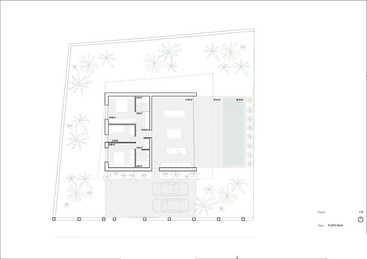Новая минималистская вилла в Бенидорме с частным бассейном Современная одноэтажная вилла недалеко от пляжа Леванте Эта новая минималистская вилла расположена на окраине Бенидорма, на прекрасном средиземноморском побережье Коста-Бланка. Разработанная как эксклюзивный, но экономически выгодный вариант на все более конкурентном рынке недвижимости, эта вилла сочетает в себе функциональность, современный дизайн и комфорт в одноэтажной планировке. Вилла расположена на участке площадью 530 м2, всего в 2,4 км от пляжа Леванте и в 1,5 км от центра города, где вы найдете супермаркеты, рестораны, торговые центры, школы и все необходимые услуги. Бенидорм славится своими песчаными пляжами, оживленной атмосферой, пристанью для яхт и круглогодичным солнцем, что делает его идеальным местом как для постоянного проживания, так и для инвестиций в отдых. Функциональная планировка с частной террасой и бассейном Вилла расположена полностью на одном этаже, что обеспечивает практичный и комфортный проживание. Она имеет 3 спальни и 2 ванные комнаты, одна из которых примыкает к спальне, что делает ее идеальной для семей или тех, кто ищет дополнительное пространство для гостей или домашнего офиса. Просторная гостиная и столовая напрямую соединяются с террасой площадью 26 м2 и частным бассейном, создавая плавный переход между внутренним и внешним пространством, что соответствует средиземноморскому стилю жизни. Открытая площадка идеально подходит для отдыха, обедов или наслаждения солнечным климатом в течение всего года. К недвижимости также относится частная парковка на два автомобиля на участке. Качественные характеристики и возможности индивидуальной настройки Эта современная вилла поставляется с высококачественной отделкой и современным оборудованием, в том числе: Усиленная входная дверь с системой безопасности Автоматические ворота для въезда автомобилей Полностью оборудованная кухня с керамической плитой, вытяжкой, духовкой и встроенной микроволновой печью Аэротермальная система для горячего водоснабжения Сплит-система кондиционирования Минималистичная черная лакированная алюминиевая столярка с терморазрывом и двойным остеклением с акустическим контролем Кроме того, покупатели могут персонализировать отделку, системы климат-контроля, фотоэлектрические панели для собственного потребления и функции домашней автоматизации, что позволяет адаптировать недвижимость к вашим конкретным потребностям по фиксированной и прозрачной цене. Отличное расположение и расстояния Пляж Леванте 2,4 км Центр Бенидорма 1,5 км Порт Бенидорма 3 км Гольф-клуб Villaitana 4 км Аэропорт Аликанте 60 км Ваш современный дом в Бенидорме ждет вас Эта новая вилла предлагает современный дизайн, уединение и близость к пляжу в одном из самых динамичных городов Коста-Бланки. Свяжитесь с нами сегодня, чтобы получить дополнительную информацию и обеспечить себе новый дом в Бенидорме. 271