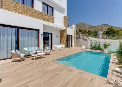 НОВЫЕ ВИЛЛЫ В БАЛКОН ДЕ ФИНЕСТРАТ Новые современные виллы в Балкон де Финестрат. Широкие и светлые виллы с 3 спальнями и 2 ванными комнатами, кухней открытого плана с гостиной-столовой, красивой террасой, частным садом с бассейном и парковочным местом. Сочетание дерева и натурального камня делает дом современным и деревенским одновременно. Виллы расположены в 10 минутах езды от Бенидорма и всего в 2 км от Финестрата. Поездка до Tierra Mitica, где вы сможете приятно провести время с семьей, займет 6 минут. Такое расположение делает его отличным выбором для дома для отдыха. Финестрат расположен в регионе Марина Байша на побережье Коста Бланка, недалеко от соседнего Бенидорма и примерно в 40 километрах от города Аликанте и международного аэропорта. Поселок расположен на склоне горы Пуиг Кампана, откуда открывается прекрасный вид на горы, побережье и Средиземное море. Бенидорм находится всего в пяти минутах езды от комплекса и предлагает все необходимые услуги, включая магазины, бары, рестораны, супермаркеты, банки, аптеки и несколько частных международных школ. Рядом с пляжами Леванте, Поньенте и Кала де Финестрат, протяженностью более 6 км, которые являются одними из лучших в Европе и отмечены Голубым флагом Европейского Союза. Все услуги для отдыха, такие как тематические парки Aqua Natura, Terra Mítica, Terra Natura, Aqualandia и Mundomar, поля для гольфа Sierra Cortina и Villaitana, походы и скалолазание в Puig Campana в несравненной природной среде или наслаждение морскими видами спорта. 271