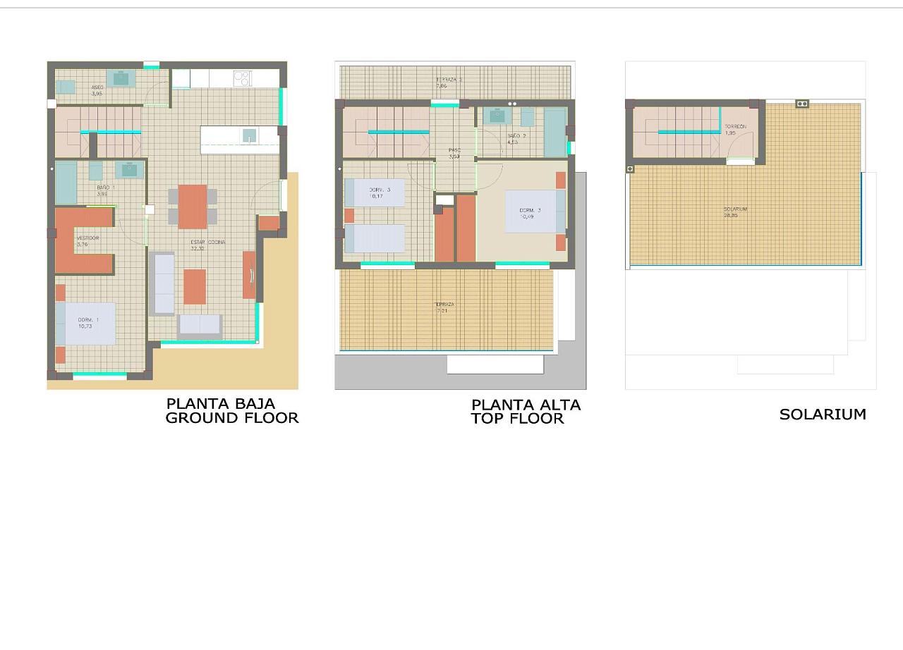 НОВЫЕ ВИЛЛЫ В ПИЛАР-ДЕ-ЛА-ОРАДАДА Новые виллы в Пилар де ла Орадада. Двухэтажные виллы имеют 3 спальни, 2 ванные комнаты, гостевой туалет, кухню открытого плана с гостиной, подвал, террасу и солярий, сад с частным бассейном. Частная парковка в подвале. Встроенные шкафы в спальнях с белыми лакированными дверями от пола до потолка, оборудованные выдвижными ящиками, вешалками и большим пространством для хранения. Меблированная гардеробная. Предварительная установка кондиционеров (сплит) в спальнях и в гостиной. Установка полов с подогревом во всем доме. Виллы расположены в нескольких метрах от всех служб и центра города. Пилар де ла Орадада - типичная испанская деревня в самой южной части побережья Коста Бланка. На большой главной улице расположены супермаркеты, множество магазинов, ресторанов и баров, а также несколько прекрасных площадей. Всего в 5 минутах езды находятся прекрасные пляжи Торре-де-ла-Орадада и Миль-Пальмерас с набережной из мелкого песка. В Пилар-де-ла-Орадада хорошо развита сеть велосипедных и пешеходных дорожек, а также имеется большое предложение различных спортивных развлечений. Поле для гольфа Lo Romero с 18 лунками находится всего в нескольких минутах езды от города. Аэропорты Корвера (Мурсия) и Аликанте находятся соответственно в 40 и 55 минутах езды.