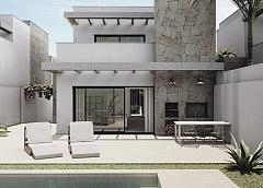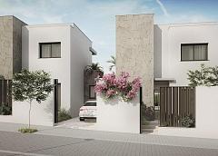 НОВЫЕ ВИЛЛЫ В САН-ХУАН-ДЕ-ЛОС-ТЕРРЕРОС Современная и новаторская архитектура современных вилл воплотилась в жилом комплексе, расположенном в городе Сан-Хуан-де-лос-Террерос в Пульпи, Альмерия, на юге Испании. Эти тщательно продуманные дома и жилой комплекс сочетают в себе исключительный уровень дизайна и качества с высочайшими стандартами экологичности и благополучия. Дома тщательно спроектированы технической командой архитекторов, так что свет, простор и ориентация придают каждому дому и участку особый характер. Уникальные пространства, которые открывают дверь в новый образ жизни, которым можно наслаждаться. Фундамент и структура домов решены из армированного бетона и находятся на десятилетнем гарантийном обслуживании. Фасады, спроектированные для снижения энергопотребления дома, сочетаются с различными материалами для достижения эстетического единства в композиции и цвете, что отражено в инфографике. Просторные террасы, оборудованные массивными парапетами для обеспечения безопасности перил террасы, придают ей амплитуду и освещенность. Внешние ограждения участка будут отделаны теми же материалами, что и дом, что обеспечит интеграцию в жилой комплекс. Вентилируемые и изолированные плоские крыши на перекрытиях, с различной отделкой в зависимости от их расположения и использования. Входная дверь в дом будет бронированной. Двери в главную спальню, дополнительные ванные комнаты и туалеты будут оснащены замками. Внешние столярные изделия будут состоять из окон и французских окон из лакированного алюминия рулонные жалюзи из алюминиевых планок с электроприводом в жилых комнатах. Видеодомофонная система, которая гарантирует индивидуальный контроль доступа для каждого из домов. Ванные комнаты будут оборудованы раковиной, унитазом и душем, а туалеты - унитазом и раковиной. В ванных комнатах установлены сантехнические приборы современного дизайна из стеклокерамики белого цвета от бренда Roca и модели Gap, с хромированными или матово-черными однорычажными смесителями на выбор. Душевые кабины будут установлены из 8-миллиметрового закаленного стекла длиной 80 см. Каждая предварительная установка рассчитана на систему до 10 панелей, которые могут быть установлены вместе с солнечным инвертором, подключенным к электросети дома, чтобы минимизировать потребление электроэнергии. Эти панели будут встроены в крышу, в зоне установки, скрытой от посторонних глаз. Приток воздуха в жилище будет обеспечен за счет встроенной системы микропроветривания в окнах гостиных и спален. Независимый дымоотвод для кухонной вытяжки. Предварительная установка домашней автоматики в жилище с подготовкой к будущей установке домашней автоматики для управления климатом и отоплением в помещениях, жалюзи и возможной охранной сигнализации. Предварительная установка видеонаблюдения в парковочной зоне и внутренних зонах участка. В каждом доме будет установлена кухня, полностью отделанная в матово-белом цвете, в соответствии с дизайном, с системой GOLA. Внутренние шкафы будут белыми, с распашными дверцами и выдвижными ящиками с тормозами под керамической варочной панелью, готовыми к установке видимой бытовой техники. Бытовая техника в комплект не входит. Спальни со встроенными шкафами будут поставляться с раздвижными дверями белого матового 