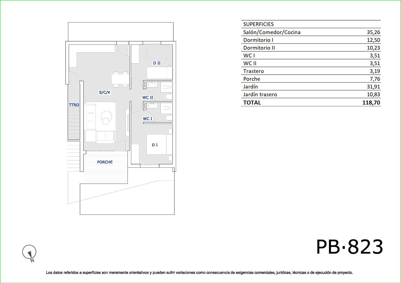Современные, недавно построенные бунгало в Сан-Мигель-де-Салинас с 3 общими бассейнами Средиземноморский образ жизни в окружении природы Откройте для себя этот современный жилой комплекс из недавно построенных бунгало на окраине Сан-Мигель-де-Салинас, города на юге провинции Аликанте, в шаговой доступности от всех удобств. Этот очаровательный городок сочетает в себе близость к морю и спокойствие природы, что делает его идеальным местом как для постоянного проживания, так и для отдыха. Варианты жилья для любого образа жизни Комплекс предлагает апартаменты в стиле бунгало с 2 или 3 спальнями, доступные в двух планировках: Первый этаж с частным садом и кладовой Верхний этаж с частной солнечной террасой Каждый дом спроектирован с учетом современных и функциональных требований, обеспечивая комфорт, естественное освещение и открытые пространства, чтобы наслаждаться средиземноморским климатом круглый год. Общие зоны для семейного отдыха Этот жилой комплекс полностью огорожен и может похвастаться отличными общими удобствами: 3 больших общих бассейна для взрослых и детей Более 3 400 м² благоустроенных зеленых зон Эти удобства делают комплекс идеальным местом для семей, пар и пенсионеров, ищущих высокое качество жизни в безопасной и спокойной обстановке. Современные удобства и энергоэффективность Дома отличаются высококачественными материалами и тщательной отделкой: Полностью оборудованная кухня Наружные столярные изделия с терморазрывом и двойным остеклением Усиленная входная дверь Включена мебель для ванной комнаты Предварительная установка сплит-систем кондиционирования в гостиной и спальнях Отличное расположение рядом с гольф-полями, пляжами и инфраструктурой Сан-Мигель-де-Салинас стратегически расположен рядом с туристическими и природными зонами: Поля для гольфа, такие как Vistabella, Las Colinas и Campoamor, находятся менее чем в 10 км Пляжи Ориуэла-Коста находятся в 11 км Лагуны Торревьехи и Ла-Маты находятся всего в 8 км Торговый центр La Zenia Boulevard находится в 9 км Аэропорт Аликанте-Эльче находится в 58 км (35 минут езды на автомобиле) Международный аэропорт Мурсии находится в 63 км (1 час езды на автомобиле) Ваш новый дом на Коста-Бланке Эти объекты недвижимости представляют собой отличную возможность для тех, кто ищет качество, комфорт и превосходное расположение. Свяжитесь с нами прямо сейчас, чтобы получить дополнительную информацию или забронировать просмотр и сделать первый шаг к своей жизни на Коста-Бланке. 271