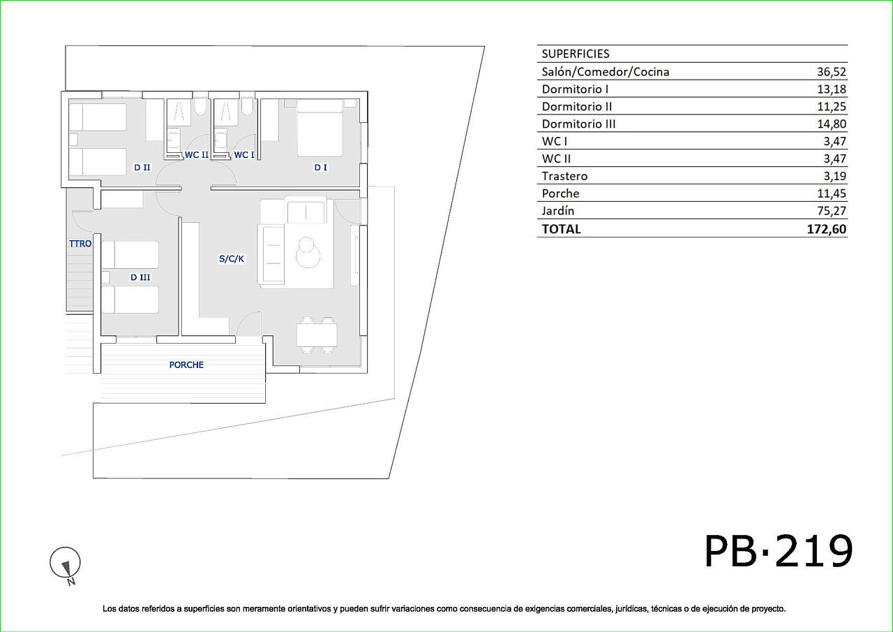 Современные, недавно построенные бунгало в Сан-Мигель-де-Салинас с 3 общими бассейнами Средиземноморский образ жизни в окружении природы Откройте для себя этот современный жилой комплекс из недавно построенных бунгало на окраине Сан-Мигель-де-Салинас, города на юге провинции Аликанте, в шаговой доступности от всех удобств. Этот очаровательный городок сочетает в себе близость к морю и спокойствие природы, что делает его идеальным местом как для постоянного проживания, так и для отдыха. Варианты жилья для любого образа жизни Комплекс предлагает апартаменты в стиле бунгало с 2 или 3 спальнями, доступные в двух планировках: Первый этаж с частным садом и кладовой Верхний этаж с частной солнечной террасой Каждый дом спроектирован с учетом современных и функциональных требований, обеспечивая комфорт, естественное освещение и открытые пространства, чтобы наслаждаться средиземноморским климатом круглый год. Общие зоны для семейного отдыха Этот жилой комплекс полностью огорожен и может похвастаться отличными общими удобствами: 3 больших общих бассейна для взрослых и детей Более 3 400 м² благоустроенных зеленых зон Эти удобства делают комплекс идеальным местом для семей, пар и пенсионеров, ищущих высокое качество жизни в безопасной и спокойной обстановке. Современные удобства и энергоэффективность Дома отличаются высококачественными материалами и тщательной отделкой: Полностью оборудованная кухня Наружные столярные изделия с терморазрывом и двойным остеклением Усиленная входная дверь Включена мебель для ванной комнаты Предварительная установка сплит-систем кондиционирования в гостиной и спальнях Отличное расположение рядом с гольф-полями, пляжами и инфраструктурой Сан-Мигель-де-Салинас стратегически расположен рядом с туристическими и природными зонами: Поля для гольфа, такие как Vistabella, Las Colinas и Campoamor, находятся менее чем в 10 км Пляжи Ориуэла-Коста находятся в 11 км Лагуны Торревьехи и Ла-Маты находятся всего в 8 км Торговый центр La Zenia Boulevard находится в 9 км Аэропорт Аликанте-Эльче находится в 58 км (35 минут езды на автомобиле) Международный аэропорт Мурсии находится в 63 км (1 час езды на автомобиле) Ваш новый дом на Коста-Бланке Эти объекты недвижимости представляют собой отличную возможность для тех, кто ищет качество, комфорт и превосходное расположение. Свяжитесь с нами прямо сейчас, чтобы получить дополнительную информацию или забронировать просмотр и сделать первый шаг к своей жизни на Коста-Бланке. 271