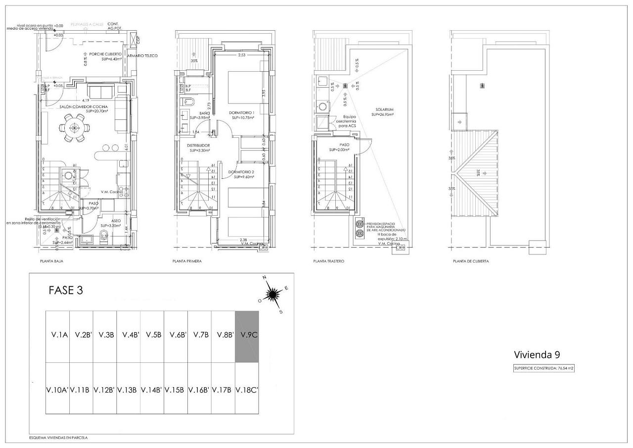 Современные таунхаусы рядом с полями для гольфа в Санта-Росалия, Мурсия Новые дома в тихой деревенской местности Откройте для себя этот привлекательный новый комплекс современных таунхаусов, расположенный в очаровательной деревне Санта-Росалия в регионе Мурсия. Окруженный одними из самых престижных полей для гольфа в этом районе и находящийся всего в нескольких минутах езды от пляжей Мар-Менор, этот район предлагает идеальное сочетание спокойствия, удобства и активного образа жизни. Санта-Розалия — это традиционная испанская деревня с гостеприимной атмосферой, где жители могут посещать местные магазины, супермаркет, бары и рестораны, в том числе популярный La Almazara. Благодаря своему стратегическому расположению между полями для гольфа Roda Golf, Mar Menor Golf и Los Alcazares, это место является очень привлекательным как для постоянного проживания, так и для отдыха. Стильные таунхаусы с солярием и открытой зоной отдыха Комплекс состоит из 18 современных таунхаусов с 2 или 3 спальнями и 2 ванными комнатами, спроектированных с современной открытой планировкой. В каждом доме есть светлая гостиная и столовая, соединенные с полностью оборудованной кухней с бытовой техникой, что создает функциональное и комфортное жилое пространство. Все объекты включают частный солярий на крыше с летней кухней, идеально подходящий для наслаждения средиземноморским климатом, приема гостей или отдыха на свежем воздухе в течение всего года. Кроме того, каждый дом имеет собственное парковочное место и кладовую, расположенную в общем гараже. Качественная отделка и современные удобства Эти дома построены из высококачественных материалов и спроектированы с учетом комфорта и энергоэффективности. Среди удобств — аэротермальная система горячего водоснабжения, подготовка к установке канальной системы кондиционирования, а также полностью оборудованные ванные комнаты с мебелью, зеркалами и душевыми перегородками. Комплекс также включает общий бассейн, который станет идеальным местом для отдыха и наслаждения солнечными днями в спокойной обстановке. Превосходное расположение рядом с полем для гольфа и морем Комплекс Santa Rosalia идеально расположен всего в 4,5 км от пляжей Лос-Алькасарес, известных своими спокойными водами и длинной набережной вдоль Мар-Менор. Окрестности — настоящий рай для любителей гольфа: несколько лучших полей находятся всего в нескольких минутах езды. Близлежащий город Лос-Алькасарес предлагает широкий спектр услуг, ресторанов, магазинов и развлечений, что делает повседневную жизнь легкой и приятной. Расстояния до основных достопримечательностей Пляжи Лос-Алькасарес — 4,5 км Поле для гольфа Roda — 3 км Поле для гольфа Mar Menor — 4 км Картахена — 25 км Международный аэропорт Мурсии — 30 км Ваш идеальный дом на побережье Коста-Калида Этот жилой комплекс предлагает отличную возможность приобрести современный таунхаус в удобном и тихом месте, недалеко от полей для гольфа и моря. Свяжитесь с нами сегодня, чтобы получить дополнительную информацию или договориться о посещении и обеспечить себе новый дом в Санта-Росалия. 271