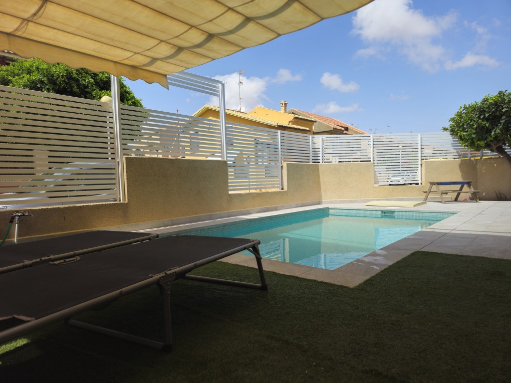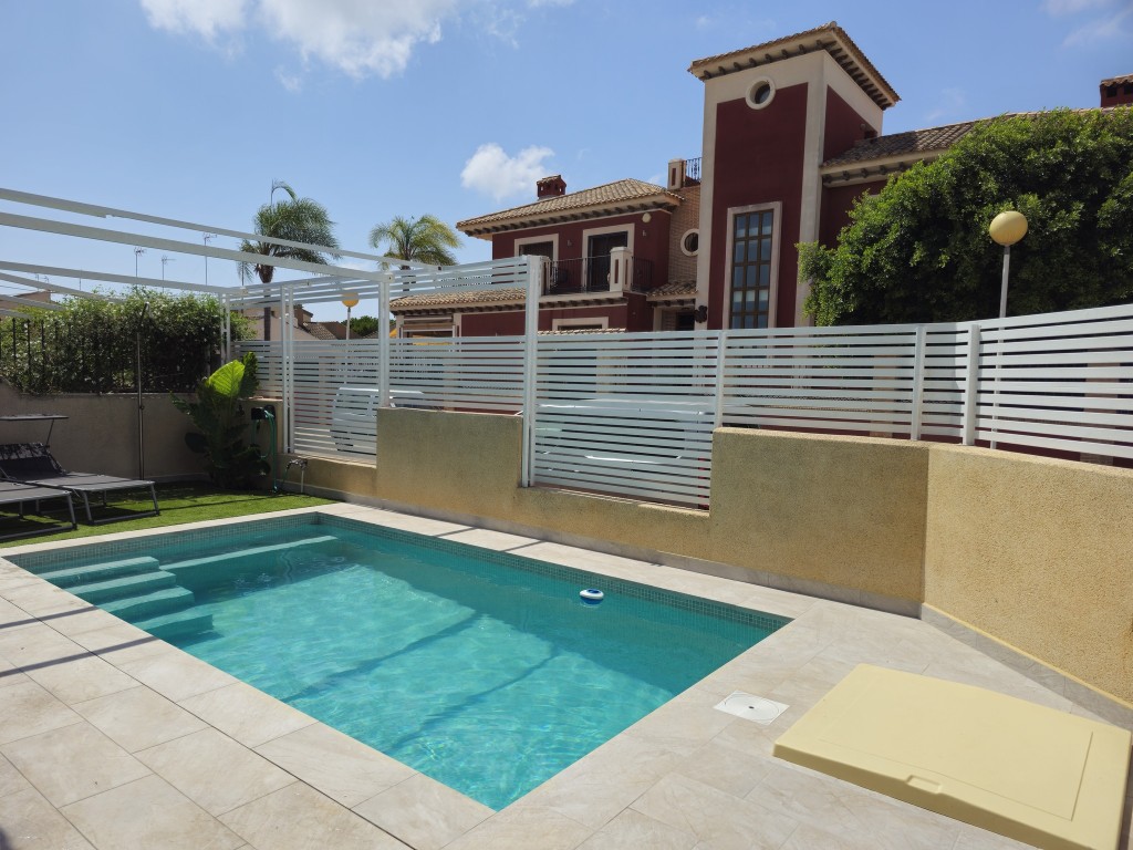 Бассейн окружен полностью отремонтированным садом с нескользящей плиткой для дополнительной безопасности и зоной отдыха с искусственной травой, идеально подходящей для загра и отдыха. Нужно отдохнуть от солнца? Затем просто вытащите тент, чтобы отдохнуть в тени. Эта жемчужина расположена всего в 1 км от оживленного порта Сан-Педро и в 2 км от торгового центра Dos Mares, у вас есть все необходимое под рукой. С обилием ресторанов и всеми крупными супермаркетами поблизости, удобство буквально не за горами. Кроме того, дом поставляется с туристической лицензией, что делает его отличной возможностью для получения дохода от аренды жилья для отдыха.