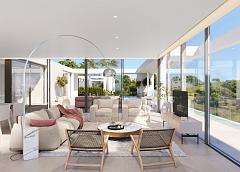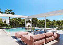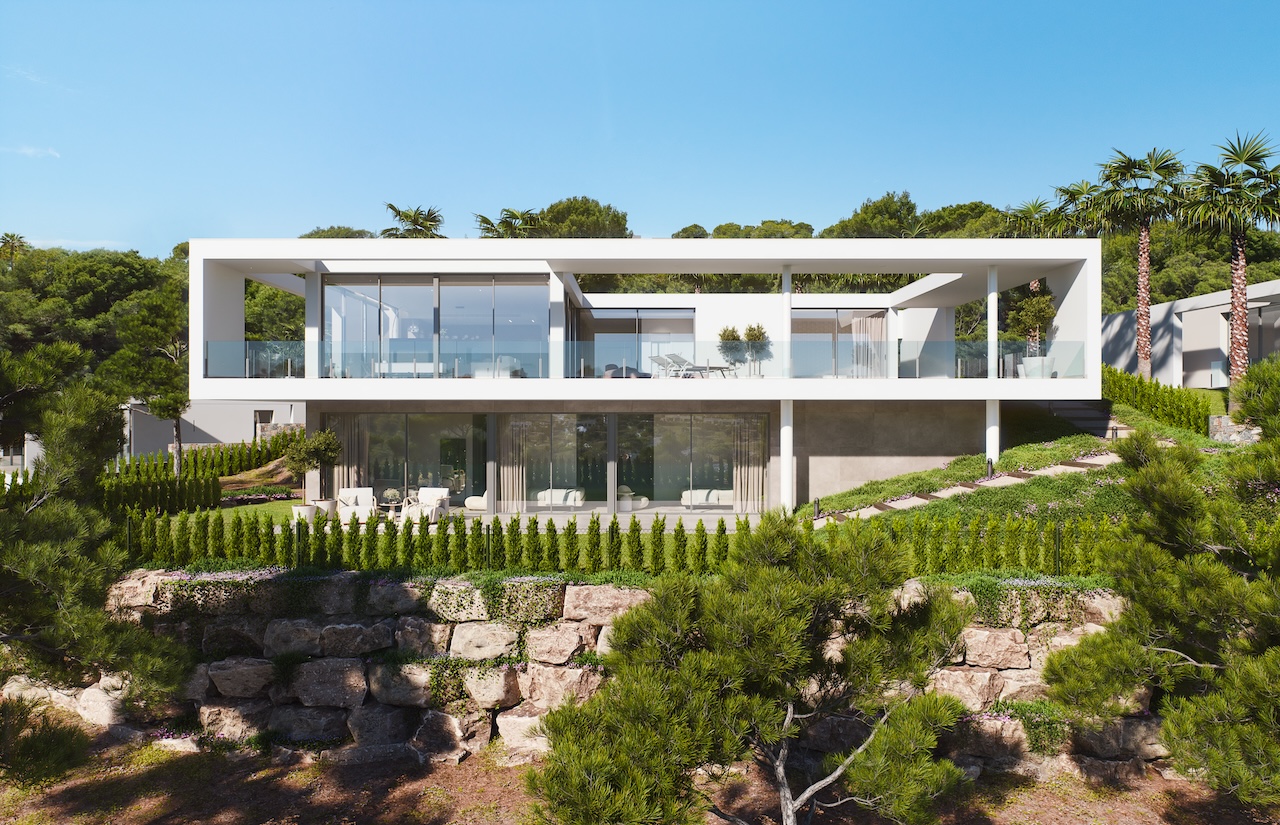 Виллы с огромными террасами с видом на окружающую природную зеленую зону.