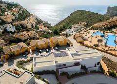 NEW BUILD RESIDENTIAL IN CUMBRE DEL SOL New Built modern apartments with 2 bedrooms and 2 bathrooms, kitchen open to the living room, with various models to choose from: terrace and garden on the ground floor apartments, solarium on the top floor. All properties distributed to make the most of the space, taking advantage of the Mediterranean light and offering a plus of comfort in your day to day. The equipment in the apartments are also oriented to comfort with under-floor heating, hot and cold air conditioning by conduits with thermostat in the living room, hot water by Altherma system, electrical appliances are included and a project of decoration to give them style and warmness. The communal areas are designed for relax and enjoy as a family, with pool surrounded by large terraces to enjoy the sun, playground for kids, social club, gardens and parking areas. Within a short distance to Cala del Llebeig, the urban core of Moraira and all the services that Residential Resort Cumbre del Sol is equipped with. At the most easterly point of the province of Alicante, Spain, lies the Residential Resort Cumbre del Sol. Residents and guests are the first to greet the majestic sun each morning as it rises over the calm waters of the Mediterranean Sea. From our exclusive viewpoint, on the highest point of the municipality of Benitachell, Cumbre del Sol offers panoramic views over the sea and the natural parks that surround us from Jávea to Moraira. Discover exclusive resort on the Costa Blanca and discover our wonderful first-class flats and villas, incredible sports and leisure facilities and complete range of services for those fortunate enough to make Cumbre del Sol their home. Benitachell located 65 minutes from Alicante airport and 1,5 hour Valencia airport. 271