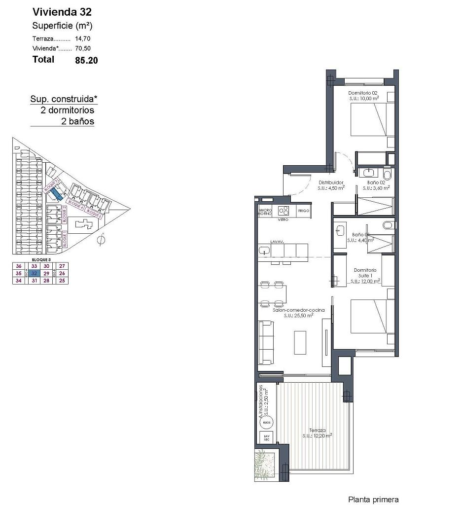 New Build Resort Apartments at La Serena Golf-Los Alcazares Near the Beach Modern Golf Front Living on the Costa Calida Discover this exclusive new build residential resort located at La Serena Golf in Los Alcazares. This contemporary development features 66 stylish apartments with 2 or 3 bedrooms and 2 bathrooms, one of them en suite, designed to offer comfort, elegance and an exceptional Mediterranean lifestyle just 300 meters from the Mar Menor. Los Alcazares is a charming coastal town known for its relaxed atmosphere, sandy beaches and long seaside promenade. With more than 300 days of sunshine per year, the area offers a perfect environment for outdoor living, water sports and golf. The town also provides a wide selection of restaurants, shops, marinas and sports facilities, making it a highly desirable destination for both permanent residence and holiday homes. Apartments with Terraces, Gardens and Private Solariums The residential complex offers several property types to suit different lifestyles. Buyers can choose between ground floor apartments with private gardens, middle floor homes with spacious terraces or penthouses with terraces and large rooftop solariums. The solariums include an outdoor shower and offer the option to add a summer kitchen and private jacuzzi, creating an ideal space for relaxation and entertaining while enjoying open views of the golf course and surrounding landscape. Each home has been designed with bright interiors and open plan living spaces that connect seamlessly with the outdoor areas. Resort Style Amenities and Exceptional Communal Areas One of the most distinctive features of this development is its resort style concept. Residents can enjoy a spectacular lagoon style swimming pool of approximately 190 m2 with beach style access and relaxing areas with Balinese beds. Additional communal facilities include landscaped gardens, a spa area, gym and sauna located in the basement level. The complex also offers a children playground, two petanque courts and communal restrooms near the pool area, creating a welcoming environment for residents and guests. Quality Finishes and Modern Features The apartments are built with modern materials and high quality specifications designed for comfort and style. Fully equipped kitchen with white glass finish appliances Bathrooms with vanity units, shower screens and backlit mirrors Motorized window shutters Basic lighting package Fully installed ducted air conditioning Underground parking space for each property Underground bicycle parking and optional storage rooms Prime Location Close to Beach and Golf Mar Menor beach 0.3 km La Serena Golf next to the development Los Alcazares town center 2 km Cartagena 22 km Murcia 40 km Region de Murcia International Airport 30 km Alicante Elche Airport 90 km The calm and shallow waters of the Mar Menor are ideal for swimming, sailing and paddle surfing throughout the year. Secure Your Home at La Serena Golf Resort These modern apartments combine beachside living, golf views from most units and resort style amenities in one of the most attractive areas of the Costa Calida. Contact us today to receive more information or arrange a visit and secure your new home in La Serena Golf-Los Alcazares. 271