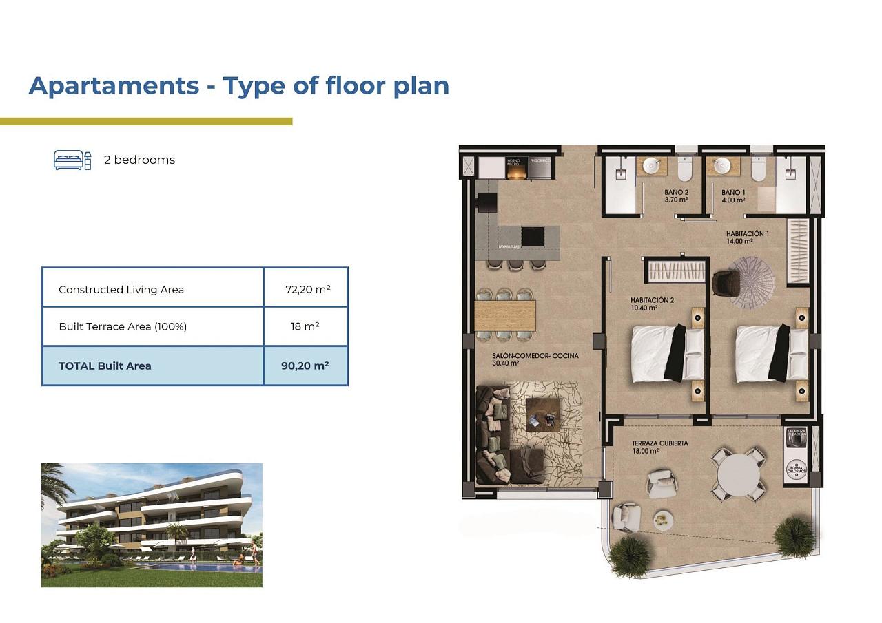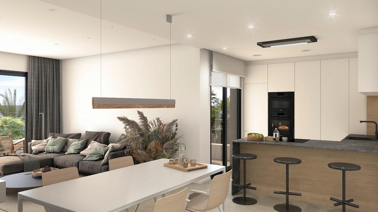 Exclusive Residential Complex in Punta Prima (Orihuela Costa) – Just 1 km from the Sea Welcome to a new and exclusive residential development in Punta Prima, Orihuela Costa. Located just 1 km from the Mediterranean Sea, this modern complex offers a range of 2- and 3-bedroom apartments and 3-bedroom bungalows designed to provide the ultimate in comfort and lifestyle. Spacious Apartments with Stunning Outdoor Spaces The apartments in this complex feature large terraces, perfect for enjoying the sunny Mediterranean climate. Each home includes a parking space in an underground garage and a storage room for added convenience. Ground floor apartments come with private gardens, while penthouses boast spacious solariums—ideal for soaking up the sun and enjoying the views. Luxurious Bungalows with Private Gardens and Solariums The ground-floor bungalows offer expansive corner gardens with parking areas, providing extra space and privacy. Upper-floor bungalows also include a garden with parking and feature a private solarium, where you can relax and enjoy the sunshine in complete seclusion. Exceptional Common Areas for Relaxation and Entertainment This residential complex is designed to be a peaceful oasis with a range of amenities to enjoy. Residents have access to three swimming pools, two jacuzzis, beautifully landscaped gardens, walking areas, a calisthenics gym, and a children’s play zone. Everything you need for a relaxing lifestyle is right here, just steps from your home. Prime Location with Easy Access to Amenities Punta Prima is a highly sought-after area in Orihuela Costa, known for its excellent location and amenities. The stunning beaches of Costa Blanca are just minutes away, and you’ll be close to shopping centers like Punta Marina (2 km) and La Zenia Boulevard (4 km). Golf lovers will appreciate the proximity to several golf courses, while Alicante International Airport is just 50 km away.
