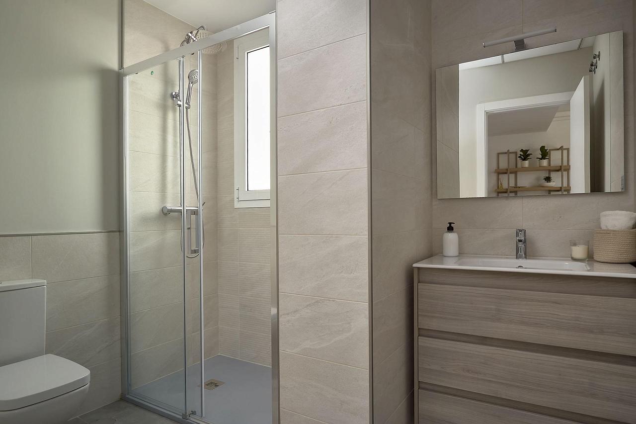 NEW BUILD RESIDENTIAL COMPLEX IN VERA New Build residential of apartments in Vera just 400m from the huge Vera beach named "El Playazo". The typologies are ground floor with two private gardens, one in each orientation, which allows you to enjoy sun or shade whenever you want depending on the time of day or the season of the year. The first floors have terraces and the penthouses have large solariums. All the apartments have extra height ceilings (2.95 m) providing a great feeling of spaciousness. The kitchen comes fully furnished and equipped integrated with the living-dining area with a bar area. The doors and fitted wardrobes are lacquered in white and the floor is made of laminated wood. The hot-cold air conditioning and the hot water are generated by a state-of-the-art DAIKIN Aerothermal device, a technology that saves up to 70% of electricity consumption compared to traditional systems. All bathrooms come with a shower instead of a bathtub, with recessed mirrors and also with a stone countertop and glass partition in the main bathroom. The blinds in the living room and master bedroom are electric, hermetically sealed and with adjustable slats. The gardens and solarium are delivered with the floors finished combining artificial grass and a beautiful paving imitating wood. Each house includes a private outdoor parking space. Each block of the promotion has an independent elevator. Both the buildings and the apartments have a series of bioclimatic architecture characteristics (orientation, insulation, windows and shutters, pergolas) that allow optimal natural regulation of ventilation, temperature and light throughout the different seasons of the year. The communal areas are made up of pedestrian squares and green areas, with a large swimming pool for adults and another for children in the central square. The entire urbanization is free of architectural barriers for the disabled. Here tranquillity and relaxation are guaranteed. Vera is one of the best naturist places in Europe, recognized for the quality and purity of their waters. It offers six kilometres of beaches (Las Marinas-Bolaga, Puerto Rey, El Playazo, Quitapellejos). Vera bordering with the famous tourist destinations such as Mojacar and the Almanzora Caves. Residential complex located about 1,5 hour drive away from Murcia - Corvera airport and about 2 hours away from Alicante airport.