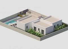 NEW BUILD MODERN VILLAS IN BENIJOFAR New Build villas located in Benijófar, a privileged area of the Costa Blanca, equipped with all services, 20 minutes from Alicante Airport, near the beautiful beaches of Guardamar and several golf courses. It is a modern style villas consisting of spacious living-dining room with an open-plan kitchen, 3 bedrooms( one of them en-suite) and 3 bathrooms. It also has a private plot with terrace, parking area, private pool, Mediterranean-style garden with great views. The house also has hot and cold air conditioning, video intercom and security door. Benijofar it is a lovely village with a charming church and all services such as supermarkets, pharmacies, banks, restaurants and natural park located very close to the villas. There are several golf courses close by as well as water parks in nearby Rojales and Torrevieja. Benijófar located a few minutes from the N-332 and AP-7. Just 30 minutes from Alicante airport, 10 minutes from the beaches of Guardamar and Torrevieja. 271
