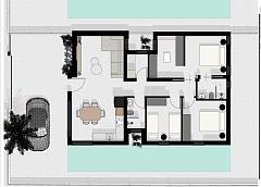 Modern Independent Villas in Monteazul Benijofar with Optional Pool and Solarium Prime Location Between Benijofar and Ciudad Quesada These modern independent villas are located in the sought after Monteazul urbanization, a peaceful residential area situated between Benijofar and Ciudad Quesada. The neighborhood offers an excellent balance between comfort, tranquillity and convenience, with bars, restaurants, supermarkets and essential daily services just a short walk away. The beautiful beaches of Guardamar del Segura are approximately 9 km from the development, while Alicante International Airport lies around 38 km away. Golf enthusiasts can enjoy La Marquesa Golf at just 5 km and Vistabella Golf at 14 km. The marina of Torrevieja is located about 14 km from the villas. Stylish Single Level Living Each villa is thoughtfully designed on one floor, offering a practical and comfortable layout perfect for both holidays and year round living. The homes feature 3 bedrooms and 2 bathrooms, including a master bedroom with an ensuite bathroom and a spacious walk in wardrobe. A separate laundry room and private parking space on the plot add extra convenience. High Quality Interiors and Modern Features The villas include fitted bathrooms with furniture, mirror and shower screen. Additional features include ducted air conditioning pre installation, fully furnished kitchens and motorized shutters in all bedrooms, ensuring comfort and modern functionality in every space. Optional Private Pool and Solarium Buyers have the option to add a private swimming pool or a rooftop solarium for an additional cost, allowing you to customize your outdoor living area and enhance your Mediterranean lifestyle. Excellent Connectivity and Tranquil Surroundings Situated in a quiet new residential area, the villas offer easy access to the AP7 motorway, connecting you quickly to nearby coastal towns, marinas, golf courses and shopping areas. This enviable location makes the development ideal for those seeking a relaxed lifestyle close to both inland amenities and coastal attractions. Contact us today to arrange a viewing and secure your new home in Benijofar. 271
