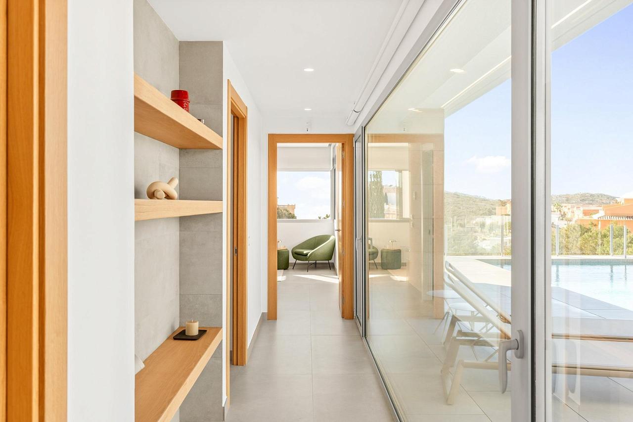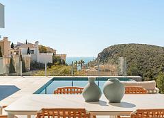 NEW BUILD VILLA WITH THE SEA VIEWS IN CUMBRE DEL SOL A house with a clear concept, to create a fusion between indoors and outdoors, by obtaining open stays, bright and functional rooms. The living room invades the terrace and invites you to enjoy the wonderful Mediterranean climate, which gives us almost 300 days of sunshine a year. Conceived in open L-shaped modules, the villa embraces the main garden, where an impressive infinity pool merges with the sea. A space open to the outside, which invites you to enjoy the sun and the Mediterranean climate, but oriented in such a way as to achieve maximum privacy. The villa is divided into two levels. Upstairs is the sleeping area, where two bedrooms share a common bathroom, while the master suite becomes a private sanctuary with its own bathroom and dressing room. From the rooms, you can enjoy breathtaking views of the sea and the mountains, creating a feeling of serenity and tranquillity that invites you to relax. On the ground floor is the day module, which opens to the outside, creating a sense of continuity and connection with the surroundings. The day module consists of an entrance hall, a guest toilet, and the tandem formed by a large living-dining room and kitchen that are perfectly integrated. Both modules converge in the outdoor area with the terrace and swimming pool as a point of connection. New Build Villa contemporary style blends with Mediterranean tradition, creating a harmonious and balanced space that invites relaxation and enjoyment of the senses. The main garden, with its Mediterranean vegetation and aromatic plants, connects you with nature. This a unique and special villa, designed to enjoy life to the fullest and to create unforgettable memories in dreamlike environment. A villa that invites you to dream of a life full of luxury, comfort and beauty, in a space where architecture and nature merge in a perfect symphony. 271