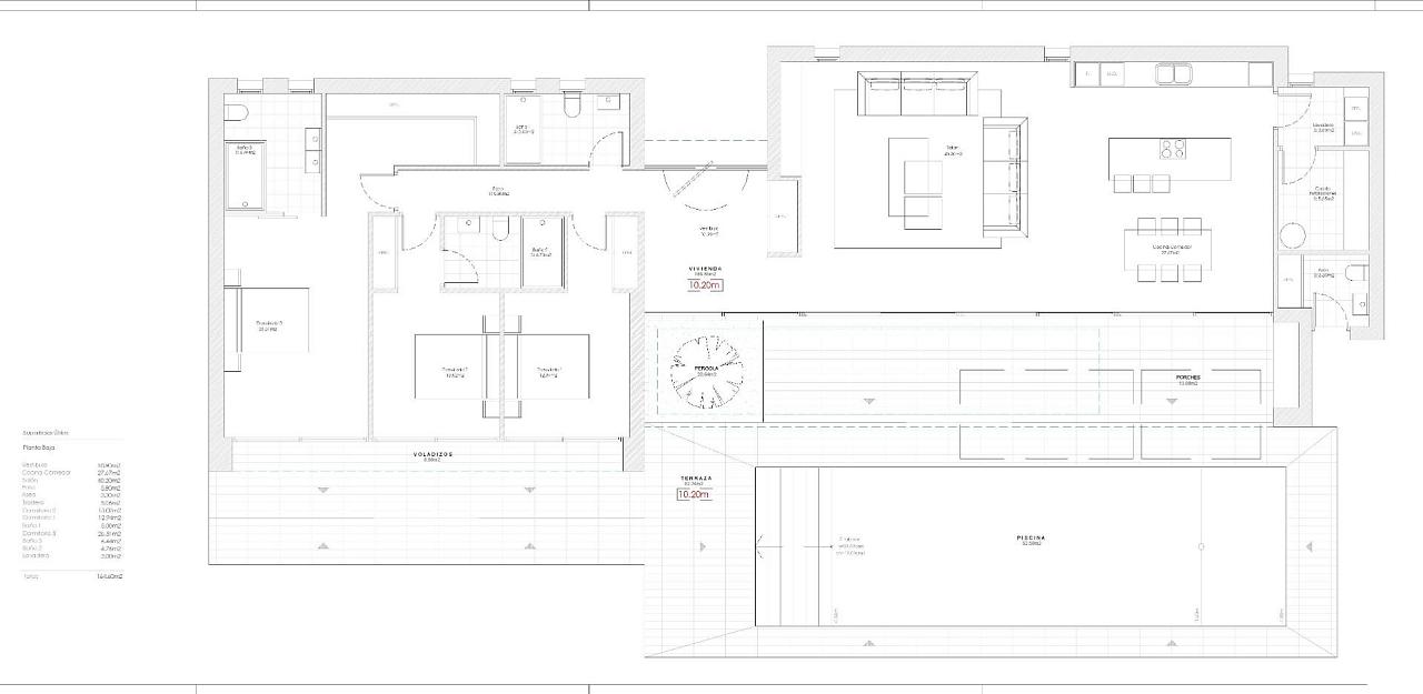 New Build Villa for Sale in Calpe – Modern Design Just 900m from the Beach Exclusive New Construction Villa in a Prime Residential Area of Calpe Located in one of the most sought-after residential zones of Calpe, this newly built villa offers the perfect combination of modern comfort, privacy, and excellent proximity to the town center and beaches. Just 900 meters from the sandy coastline and minutes from all essential services, this property sits on the outskirts of the town, providing a tranquil yet secure environment. Single-Level Living with Open Plan Layout Designed for practicality and ease, the villa is distributed across a single floor, making it ideal for both families and retirees. The entrance leads into a bright hallway, opening up to a spacious open-plan living and dining area with a modern kitchen featuring an island separate utility room. Large sliding doors connect the interior with a covered porch area complete with a built-in barbecue, an expansive terrace, and a private swimming pool of 52 m². Three Bedrooms and Four Bathrooms for Maximum Comfort The sleeping area is smartly arranged on the right wing of the home, consisting of: A master suite with walk-in wardrobe and en-suite bathroom A second bedroom with en-suite bathroom A third bedroom with access to a full bathroom in the hallway An additional bathroom with external access, designed to serve the pool area Luxury Finishes and Top-Quality Specifications This villa is built to the highest standards and includes: Underfloor heating and fully installed ducted air conditioning Smart home automation system (domotics) Alarm system for enhanced security High-end exterior carpentry with thermal break and motorized blinds in bedrooms Designer kitchen furniture with integrated appliances Landscaped garden with privacy-enhancing cypress hedges Private gated parking space for two vehicles Discover Calpe and its Surroundings Calpe is a coastal gem in Alicante's Marina Alta region, known for its blend of Valencian charm and modern amenities. The town is home to three beautiful sandy beaches, the iconic Peñón de Ifach rock, and two sailing clubs: Real Club Náutico de Calpe and Club Náutico Puerto Blanco. Distances to major points of interest: Beach: 0.9 km Calpe town center: 1.5 km Altea: 11 km Benidorm: 22 km Golf Ifach: 9 km Alicante Airport: 78 km (approx. 1 hour) Valencia Airport: 130 km (approx. 1.5 hours) Your Ideal Home in the Heart of the Costa Blanca Experience Mediterranean living at its finest. Contact us today to arrange a visit and make this beautiful villa in Calpe your next home. 271