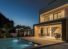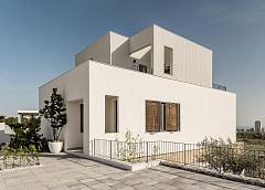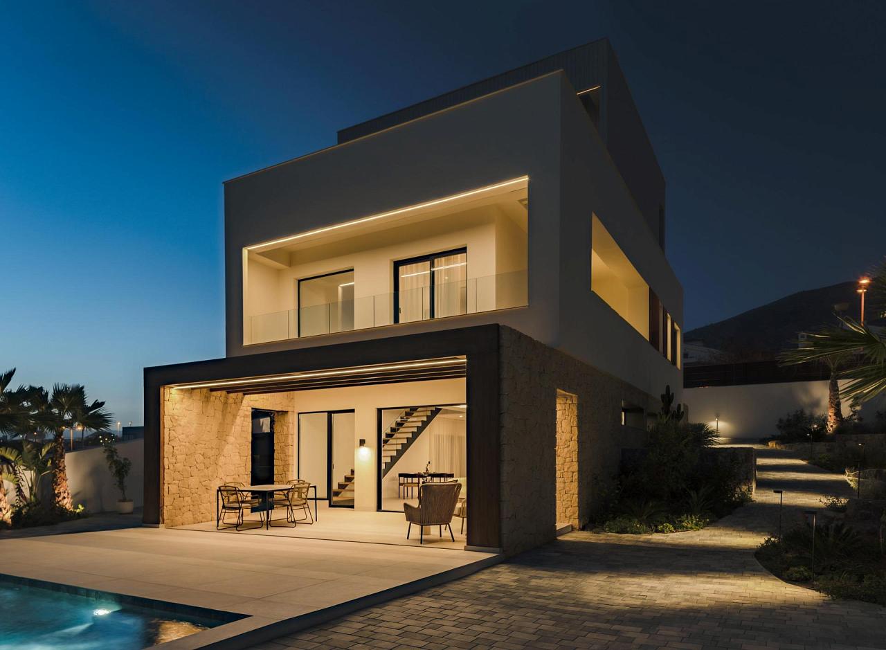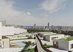 NEW BUILD VILLAS IN FINESTRAT New Build Modern villas in Finestrat. Villas with 4 bedrooms and 4 bathrooms, open plan kitchen with lounge area, terrace with magnificent views over Benidorm, private garden with swimming pool and parking space. The lateral garden, adorned with cacti and white gravel, connects the Access Level 1 with the main floor (Level O). The use of natural grass in the rest of the terrain is presented as an additional feature through a meticulously designed landscaping project. Each level is accentuated with a material that enhances its essence. Level O is clad in natural limestone, providing support to the entire structure. Level 1, with its monolayer finish and wooden shutters, safeguards the most intimate part of the residence. Finally, Level 2, where the master bedroom is located, opens up to a spacious terrace and is finished with textured monolayer in a warm tone. The Mediterranean aesthetic is achieved through a perfect fusion of tradition, modern architecture, and nature. Finestrat located in the Marina Baixa region of the Costa Blanca, close to neighbouring Benidorm and about 40 kilometres from the city of Alicante and the international airport. The village is situated on the mountainside of Puig Campana and offers beautiful views of the mountains, the coast and the Mediterranean Sea. Benidorm is just a five-minute drive from the properties and offers all the services you would need including shops, bars, restaurants, supermarkets, banks, pharmacies and several private international schools.
