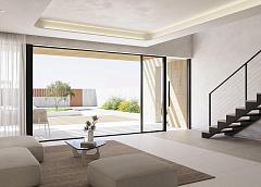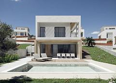 NEW BUILD VILLAS IN FINESTRAT New Build Modern villas in Finestrat. Villas with3 bedrooms and 3 bathrooms, open plan kitchen with lounge area, terrace with magnificent views over Benidorm, private garden with swimming pool and parking space. It is conceived as a fully walkable space with interior and exterior pathways that provide independent access to each floor. This design offers various perspectives of the architectural complex and its surroundings, with the sea and Sierra Cortina serving as a picturesque backdrop. The main entrance to the villa is located at the lower part of the plot, featuring ample parking for two vehicles. A water feature with lounge chairs introduces you to the ground floor, characterized by wide walls adorned with masonry. Extending seamlessly from the living room is a terrace, made possible by a large folding window. Wooden shutters on masonry walls provide a partially covered outdoor area for added comfort. The pool, with its aquamarine hues and gresite lining, sits adjacent to a pavement area crafted from non-slip porcelain tile with a wood-like appearance. This space also includes a barbecue area that can be customized to suit the user’s needs, with access from a paved zone through the natural terrain. Finestrat located in the Marina Baixa region of the Costa Blanca, close to neighbouring Benidorm and about 40 kilometres from the city of Alicante and the international airport. The village is situated on the mountainside of Puig Campana and offers beautiful views of the mountains, the coast and the Mediterranean Sea. Benidorm is just a five-minute drive from the properties and offers all the services you would need including shops, bars, restaurants, supermarkets, banks, pharmacies and several private international schools. 271