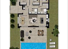 NEWLY BUILT VILLAS WITH POOL IN HONDON DE LAS NIEVES Discover the elegance and comfort of these beautiful detached villas ranging from 108 to 128 m2, designed to offer you an exceptional lifestyle, all on one floor. Enjoy the privacy offered by this villa, where you can relax in your own garden, create an oasis of tranquillity, or cool off in your private pool to enjoy the warm summer days. The property is distributed into two large areas: Day area: Here we find a spacious living-dining room with an open-plan kitchen (kitchen furniture included) that connects to the large modern porch through two large windows, leading to the landscaped outdoor area and the pool. As an extra space, there is a laundry area strategically located in the layout of the house, which is easily accessible from anywhere in the property. Rest area: In this area there are 3 bedrooms. The master bedroom has a large dressing room and en-suite bathroom. There is also a second bathroom for the other bedrooms and the rest of the house. Located in a quiet, residential area, this villa allows you to enjoy the privacy and tranquillity you desire, while being within easy reach of amenities, shops, supermarkets and restaurants. It is the perfect balance between peaceful seclusion and the comforts of modern living. In this development in Hondón de las Nieves, every day is an opportunity to connect with the world. Hondón de las Nieves is a municipality in the Valencian Community, Spain. It is located in the south-west of the province of Alicante, in the Vinalopó Medio region. The beaches and Alicante airport are very close by, only 30 minutes away by car. 271