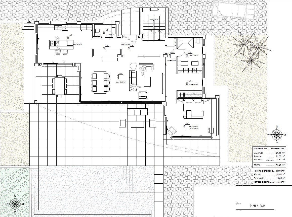 LUXURY NEW BUILD VILLA IN MORAIRA New Build Luxury villa with the best qualities, and within walking distance of the beautiful beaches and the center of Moraira. This luxury villa is distributed over 3 floors: on the ground floor (147.30m2) there is a large bright living room next to the open kitchen with a cooking island, a guest toilet and a bedroom with an en-suite bathroom. On the outside of this floor we find the swimming pool and the barbecue area. Then we go up to the upper floor (133.65m2) where we find 3 spacious rooms with their bathroom en suite. Finally the basement floor, where it leads to a double garage and laundry. EXTRAS: Technal carpentry with safety glass, full kitchen with Siemens appliances, full Roca brand bathrooms and taps, LED lighting, aerothermal system for hot water and underfloor heating, ducted air conditioning (hot and cold) throughout the house, solar panels, fitted wardrobes, electric shutters, interior alarm, pre-installation of exterior alarm and security cameras. Rectangular pool with overflow system of 12x4.5 meters, barbecue area of ​​22m2, laundry room, finished garden. Automatic access doors. Energy classification A. South orientation. Moraira is a small town with good restaurants, bars and plenty of supermarkets around. There is a very pleasant beach right next to town that is great for families. The seafront offers tremendous views of Penon Ifach across the bay in Calpe. The coast road getting there is well worth doing with some spectacular views. Moraira situated about 1 hour 15 minutes North up the A7 from Alicante airport its fairly easy to get to. It's about the same distance or a little less South from Valencia airport. 271