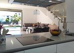 MODERN NEW BUILD VILLAS IN VILLAMARTIN New build villas with 2 models to choose from: 1 or 2 floors. All with 3 bedrooms and 2 or 3 bathrooms, private swimming pool, parking inside the plot and private solarium. The plot is fenced around the perimeter with access gates for vehicles and pedestrians. The surface of the plot is divided between the parking area finished with printed concrete, a lawn area and a paved area with the same flooring as inside. The interior carpentry has a high security armoured entrance door. Both the interior doors and the wardrobes are lacquered in white. In the kitchen we find furniture finished in white and quartz worktop in a colour matching the floor of the house. In the bathrooms there are shower trays and integrated glass screens as well as bathroom furniture and wall-mounted sanitary ware. The villa has pre-installations for ducted air conditioning. These fantastic properties are located close to Villamartin Plaza and the Villamartin golf course, where you will find numerous bars and restaurants, supermarkets, banks, a taxi rank and the local bus stop. The beaches of Orihuela Costa are only a 5 minute drive away, as is the new Zenia Boulevard shopping centre (the largest shopping centre in the province of Alicante). The airports of Alicante and Murcia are a 45 minute drive away. 271