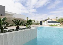 NEW BUILD VILLA IN ORIHUELA COSTA (CAMPOAMOR) Do you want to enjoy an exclusive vacation near the sea? Impossible not to fall for this ultra-modern villa in Orihuela Costa with 4 bedrooms, 2 bathrooms, private pool, garden and luxury extras, according to personal preferences. Its delicate infrastructure integrates with nature providing a quiet and isolated environment. Built with the highest quality materials, this elegant property is surrounded by abundant vegetation and a few meters from the cleanest beaches in Campoamor: Playa de la Glea, Aguamarina and Cabo Roig. It is a pleasure to have these three beautiful beaches that have been awarded with the Blue Flag within reach. Whenever you need a moment of reflection, you can go down to touch its crystal clear waters or lie down on its soft sand to read a book while listening to the placid sound of the sea. In the surroundings you will find all the essential services to live all year round: supermarkets, pharmacies, cafes, restaurants, shopping centers ... And if you are also enthusiastic about golf, less than 10 minutes away you can choose between three privileged golf courses of international recognition where put your aim to the test: Las Colinas Golf, Villamartín or Las Ramblas. The promotion includes several models of homes with 2,3,4 and up to 5 bedrooms. This particular villa consists of 4 double bedrooms, 2 bathrooms, a fully equipped American kitchen, an open living-dining room with great lighting, access to the garden and the beautiful pool. In addition, the price includes: Underfloor heating and mirror in bathrooms Indoor and outdoor lights Built-in wardrobes Security door Pre-installation of air conditioning Top brand appliances The house follows the trend of open concept design, enhancing spacious spaces and offering a greater sense of comfort and well-being in its interiors.