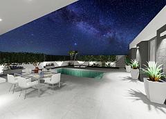 NEW BUILD VILLAS SAN JUAN DE LOS TERREROS, ALMERIA 26 New Build Modern ground floor villas with solarium and private swimming pool, 2 and 3 bedrooms, 500 metres from the beaches. In the very heart, great access to all day to day services, such as restaurants, bars with exquisite gastronomy, educational centres, sports facilities, supermarkets, shops and shopping centre 10 min away by car. Villas located 60 min from Corvera International Airport and 60 min from Almeria International Airport. The project is going to be developed on an elevated plot where you will enjoy breathtaking views of green areas, located only 500 metres from the beach, close to very attractive tourist attractions such as our Geode, covered by huge crystals of selenite, a transparent or translucent variety of gypsum, the largest in the world that can be visited. Golf courses: Aguilón Golf at 5′ drive from the development and Golf San Juan at 3′ drive. Included in the price: Private swimming pool with lighting and outside shower. Solarium equipped with summer kitchen. Landscaped garden area with artificial grass and tiled as per plan. Utility room under the staircase with access to solarium. Interior and exterior LED lighting. TV points in all rooms and porch. Electric blinds in bedrooms. Entry phone. Sanitary fittings, mirror with LED and fixed screen. Fitted wardrobes finished with drawers and mezzanine. Fitted kitchen with Silestone worktop and front, electrical appliances (washing machine, oven, ceramic hob, extractor hood, dishwasher, fridge and aerothermal heater). The sliding windows are high security, double chamber. Pre-installation of AC ducts with return grilles. Pre-installation of photovoltaic panels. Parking space with artificial lawn and parking area inside the plot. Pre-installation for parking door motor. Perimeter wall with simple torsion fence and artificial hedge. City gas. San Juan de los Terreros, in Andalusia, is a dreamy coastal destination. Its crystal-clear waters invite you to relax under the sun and enjoy the tranquillity of the sea. The lifestyle in this charming town is calm and relaxed, with a slow pace that allows you to appreciate the natural beauty and rich culture of the region. With a wide range of restaurants, bars, and outdoor activities, San Juan de los Terreros is the perfect place to enjoy life by the sea.