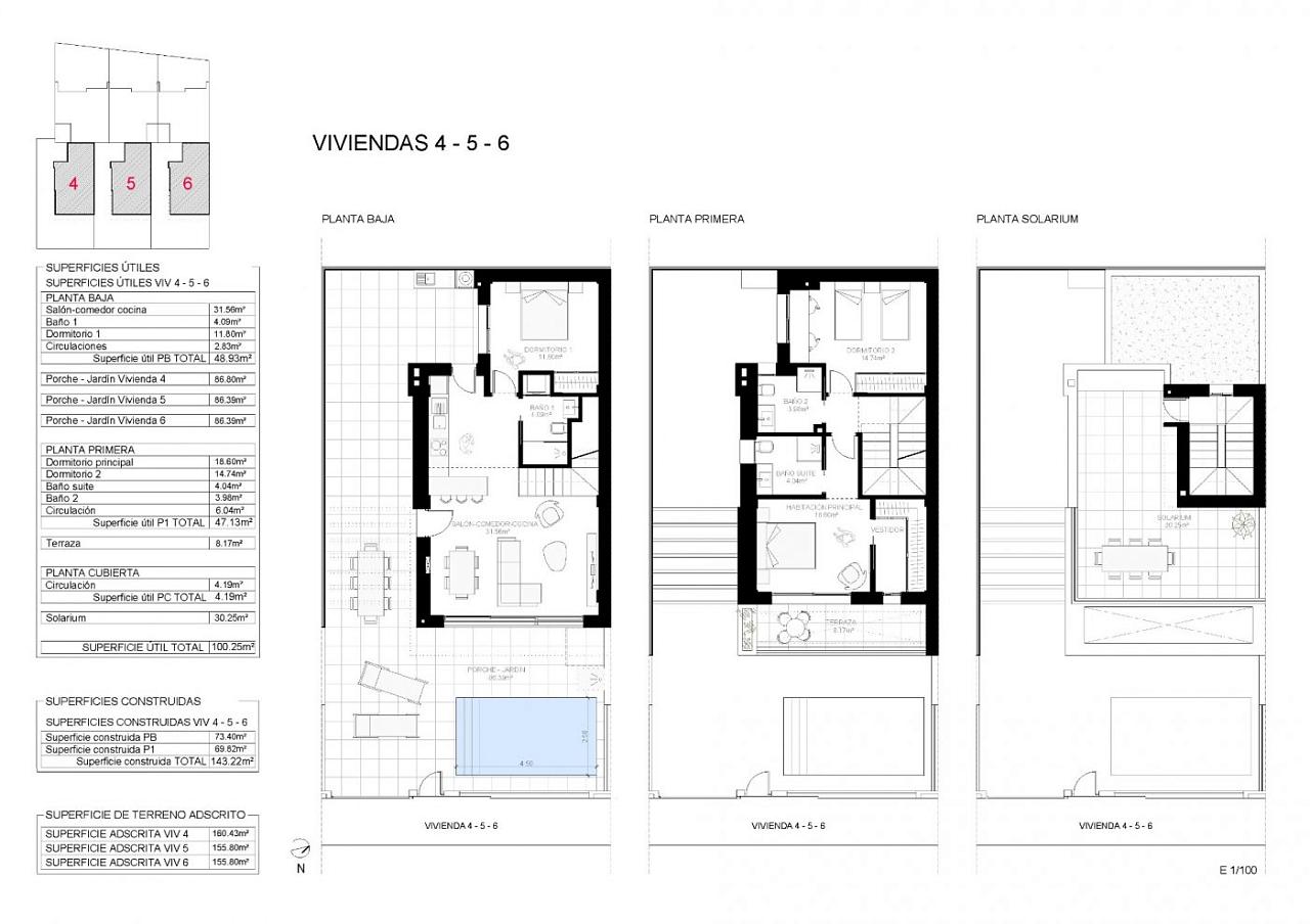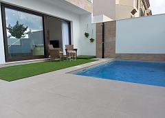 NEW BUILD VILLAS IN SAN PEDRO DEL PINATAR New Built modern villas located near the centre of San Pedro del Pinatar. Villas build over 2 floors, has 3 bedrooms, 3 bathrooms, open plan kitchen with the lounge area, fitted wardrobes, private garden with the pool and off road parking space, private solarium. From the living room you have direct access to the terrace and the pool. Villas comes with pre-installed ducted A/C, LED lighting package, motorized blinds, appliance package, intercom, aerothermic hot water system and private pool. Nearby you will find supermarkets, restaurants, shops and pharmacies. Within a short drive you can reach several golf courses or the shopping centre Dos Mares. The beautiful beach of Lo Pagan is a few minutes away. San Pedro del Pinatar's privileged location on the Mar Menor and Mediterranean coastline it attracts those with an interest in sailing and water sports, providing marina mooring and sailing clubs, while the beaches and natural mud baths attract those seeking safe sun, sea and sand. San Pedro del Pinatar has an established community and offers an excellent range of activities, including covered swimming pool and sports facilities, as well as a year round programme of social activities by the pleasant winter weather. The benefits of the mud baths, typical of the region, or the calm waters of the Mar Menor, have favoured the growth of Lo Pagán, wich currently has all kind of amenities. In addition, it has an excellent location, just 5 minutes from the Comercial Center Dos Mares