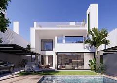 NEW BUILD VILLAS IN PRIVATE GATED RESORT IN PROVINCE OF MURCIA New Build villas in private gated resort in the Murcia region, surrounded by excellent golf courses and just 10 minutes from the sandy beaches of the Mar Menor Sea. Positioned on a privileged location, second line of the lagoon with white sand turquoise waters. Just a few steps from its main entrance, we are presenting these superb 3 bedrooms villas. These luxury villas offer a harmonious blend of modern elegance and refinement and finished to the highest standards. The main living area flows through to the garden and pool area creating a perfect atmosphere for serenity and beauty. The open plan layout connects the living room, dining area with the modern kitchen creating a seamless flow for entertaining or enjoying a lovely quiet evening. The kitchen is fully equipped with the latest appliances and materials. The third bedroom on the groundfloor could easily be used as a study or private workspace for the perfect work life balance. The large solarium offers a great variety of opportunities for relaxation, al fresco dining or simply enjoy sunbathing and the great views to the lagoon and beyond. In addition, these magnificent villas present this spectacular basement of over 100m2 with an English patio providing greenery and an abundance of natural light to this multipurpose area that could be used as a gym, cinema room or entertaining. Located in a private gated resort, with a main access entrance and 24 hours security. The resort is designed around an impressive 126.000 m2 green area. It comprises walking and cycling paths, sport facilities, paddle and tennis courts, a mini-golf course, gardens, dog parks, leisure areas, clubhouse.... Also in the central area is the jewel of the resort, a crystal-clear artificial lake of almost 17.000m2 of water surface, surrounded by white sandy beaches and palm trees, bringing a piece of the Caribbean to the Murcia Region. There are 2 islands in the lake, one of them has its own bar, there are also "beach Chiringuitos" spread around the lake. The resort is strategically located less than 4 km from the beach and the town of Los Alcázares, where you can practice various water sports, surrounded by several golf courses and the city of Cartagena less than 15 minutes by car and 22 km from Murcia airport, therefore having a wide cultural, gastronomic and sports offer within reach.