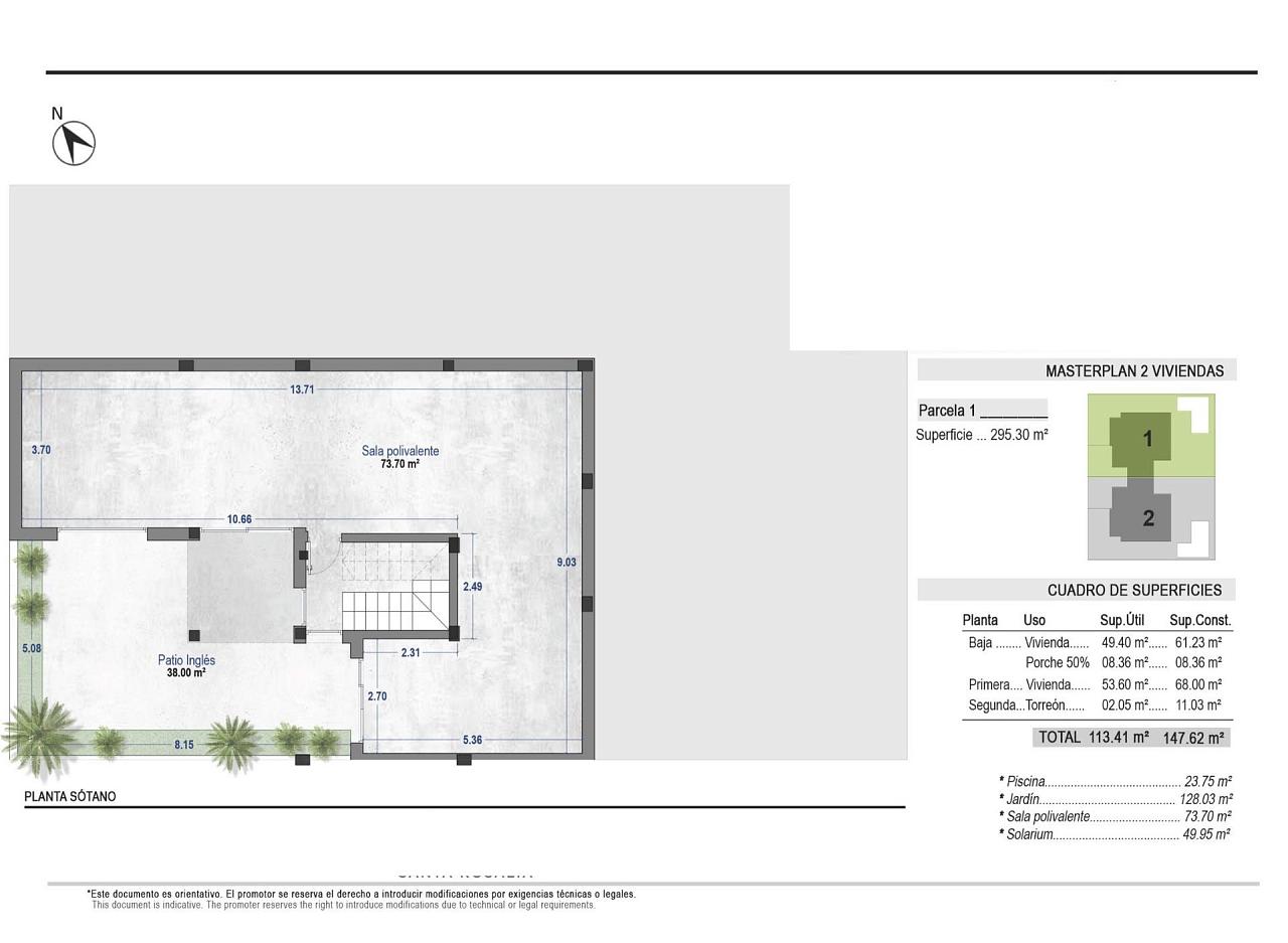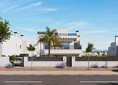 Modern Semi-Detached Villas at Santa Rosalía Lake and Life Resort - A New Standard of Mediterranean Luxury Contemporary Design Inspired by the Mediterranean Discover these exclusive new semi-detached villas located in the prestigious Santa Rosalía Lake and Life Resort, a unique residential destination on the Costa Cálida. Inspired by Mediterranean architecture, these villas combine clean lines, natural light, and modern comfort to create a harmonious and elegant living environment. Each villa is designed to provide a perfect balance between luxury and relaxation, making it ideal as a permanent residence, holiday home, or investment opportunity. Spacious Layout and High-End Finishes Each villa offers 220 m² of living space distributed across a basement, two main floors, and a rooftop solarium, set on generous 295 m² plots. The homes feature 4 bedrooms and 4 bathrooms (3 en suite), providing ample space for family and guests. The private pool with jacuzzi area, large terraces, and rooftop solarium with summer kitchen and toilet invite you to enjoy the region’s exceptional climate all year round. Premium specifications include: Fully furnished kitchen with Bosch appliances Bathrooms with furniture, mirrors, shower screens, and towel heaters Armoured entrance door and motorized access gate for vehicles LED spotlights throughout the interior and exterior Ducted air conditioning (installed on both floors) Private pool with jacuzzi area 2 photovoltaic solar panels for energy efficiency Summer kitchen in the garden Underground level with English patio for natural light and ventilation Resort-Style Living at Santa Rosalía Santa Rosalía Lake and Life Resort is a private, gated community with 24-hour security, designed around an impressive 126,000 m² of green areas. Residents enjoy walking and cycling paths, sports facilities, paddle and tennis courts, mini-golf, gardens, dog parks, and leisure zones. The clubhouse and the resort’s centerpiece-a stunning 17,000 m² crystal-clear lagoon surrounded by white sandy beaches and palm trees-offer a true Caribbean-inspired lifestyle. The lagoon even features two islands, one with its own bar, and several beach chiringuitos for relaxed dining. Prime Location on the Costa Cálida The development enjoys a central location within the resort, close to the lagoon and beach club. It’s less than 4 km from Los Alcázares Beach, 15 minutes from Cartagena, and only 22 km from Murcia International Airport. Golf enthusiasts will find several top-rated courses within a short drive, while local marinas, restaurants, and shopping areas complete the vibrant lifestyle offering. Your Exclusive Mediterranean Retreat Awaits Experience the perfect combination of luxury, comfort, and wellbeing in the heart of the Costa Cálida. Contact us today to schedule a visit and discover your dream villa at Santa Rosalía Lake and Life Resort. 271