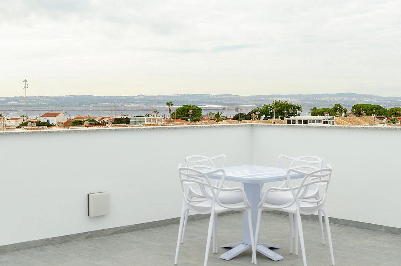 NEW BUILD VILLAS IN TORREVIEJA New Build villas in Torreta, Torrevieja. Beautiful New Build villas build over 2 floor with 3 bedrooms, 3 bathrooms, open plan kitchen with lounge area, fitted wardrobes, terrace and private solarium in some units. Villa comming with garden with private pool and parking space on the plot. Torrevieja is a Spanish town in the province of Alicante, on the Costa Blanca. It is known for its typically Mediterranean climate and coastline. It has boardwalks with resorts along its sandy beaches. The small Museum of the Sea and Salt houses exhibitions on the fishing and salt history of the city. In the interior, the Lagunas de La Mata-Torrevieja Natural Park has trails and two salty lagoons, one pink and the other green. Alicante airport located 40 minutes away and Murcia airport about 1 hour away. 271