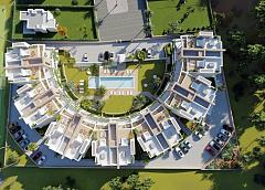 NEW BUILD RESIDENTIAL COMPLEX IN LA MANGA CLUB RESORT New Build exclusive residential of 42 apartments ideal for personal use or investment in on of the famous La Manga Club Resorts. These modern, light-filled residences afford stunning views of the Mar Menor, and their spacious terraces and the community pool let you enjoy the Mediterranean sun to the fullest. These are the last central development of new-build homes at La Manga Club, just a 5-minute walk from all the shops and restaurants. Sports rights are included and each home include a storage facility. One leaf internal doors of 210x82,5x4 cm., of MDF board, pre-lacquered in white, with horizontal slots every 50 cm. Prefabricated imbedded cabinet with sliding doors, of MDF board panelling, pre-lacquered in white. In bathrooms, tiling with porcelain stoneware, size 60 x 30 cm, set on a supporting surface of laminated plasterboard interior wall. In kitchens, tiling with porcelain stoneware tiles, size 60 x 30 cm, set on a supporting surface of laminated plasterboard interior wall. Aerothermal heating system, air conditioning and sanitary hot water. High efficiency fan coils. DOUBLE FLOW mechanically controlled ventilation. Armoured entry door block. White finish. Security Class 3. Folding metallic gate for vehicle access. Manual opening one-sided metallic gate for pedestrian access. La Manga Club is one of Europe’s leading sport and leisure resorts. Bordered by natural parks and unspoilt beaches, its privileged location boasts exclusive holiday and residential accommodation on the Spanish Mediterranean coast. Founded in 1972, La Manga Club is a warm, safe, and vibrant community that has long attracted families and golf lovers with its diverse and outstanding leisure offer. La Manga Club enjoys excellent air connections. The local airports of Corvera (only 50 km away) and Alicante (less than 100 km away) offer regular flights to the rest of Europe, making it easy to arrive and depart from the resort. 271