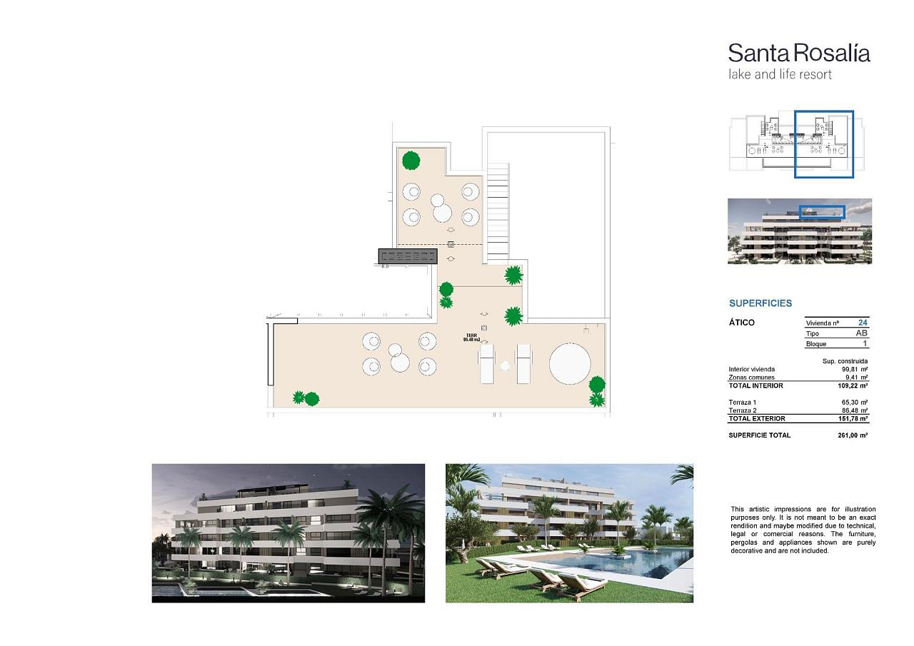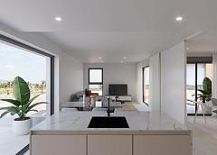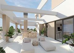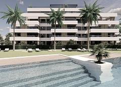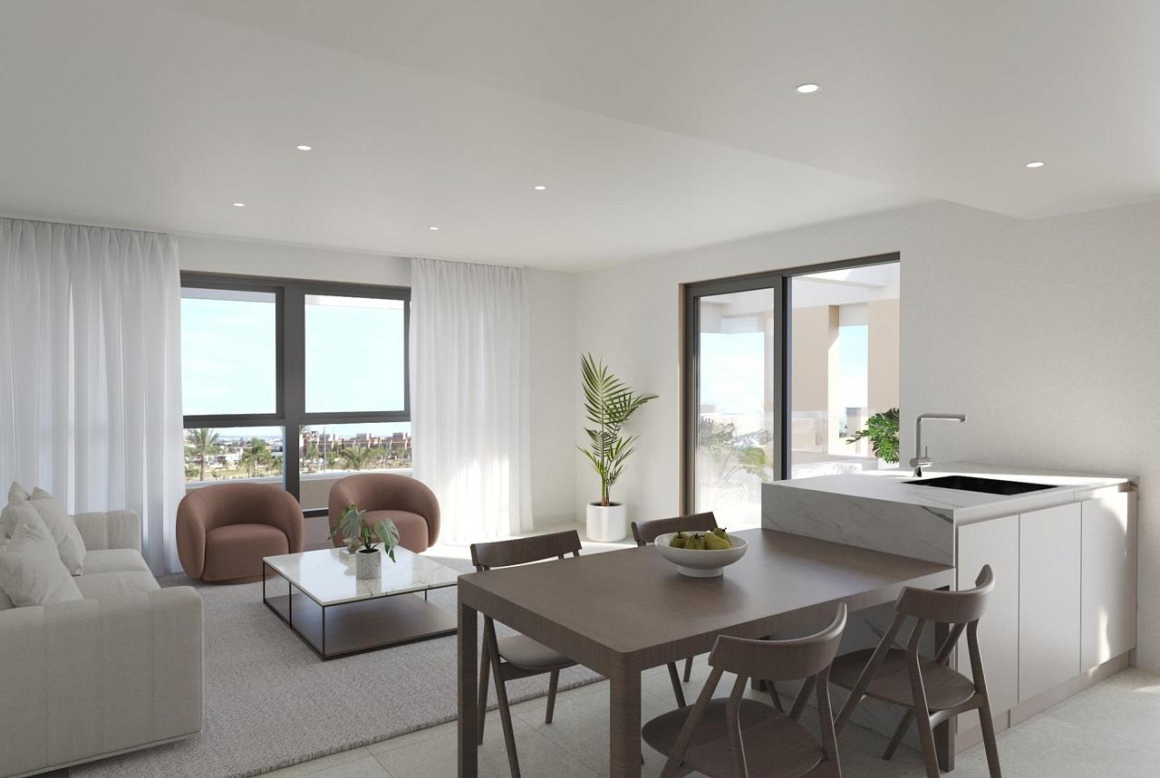 RESIDENTIAL COMPLEX OF NEW CONSTRUCTION IN PRIVATE URBANISATION IN THE PROVINCE OF MURCIA. Residential complex of newly built flats in private urbanisation with 24h security. Beautiful properties with 1, 2 and 3 bedrooms and 1 or 2 bathrooms, open plan kitchen with spacious living room, fitted wardrobes, terraces overlooking the green areas of this large luxury resort. The complex has a communal swimming pool and all properties have parking space and storage room. Located in a private gated complex, with a main entrance and 24 hour security. The complex is designed around an impressive green area of 126.000 m2. It has walking and cycling paths, sports facilities, paddle and tennis courts, a mini-golf course, gardens, dog parks, leisure areas, clubhouse..... Also in the central area is the jewel of the complex, an artificial lake of crystalline waters of almost 17.000m2 of water surface, surrounded by white sandy beaches and palm trees, bringing a piece of the Caribbean to the Region of Murcia. There are 2 islands in the lake, one of which has its own bar, there are also "Chiringuitos de playa" (beach bars) scattered around the lake. The complex is strategically located less than 4 km from the beach and the town of Los Alcazares, where you can practice various water sports, surrounded by several golf courses, the city of Cartagena less than 15 minutes by car and 22 km from the airport of Murcia.