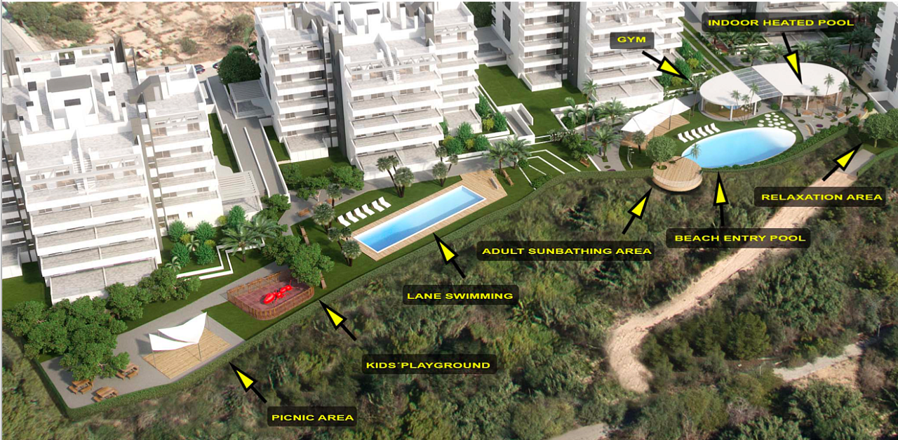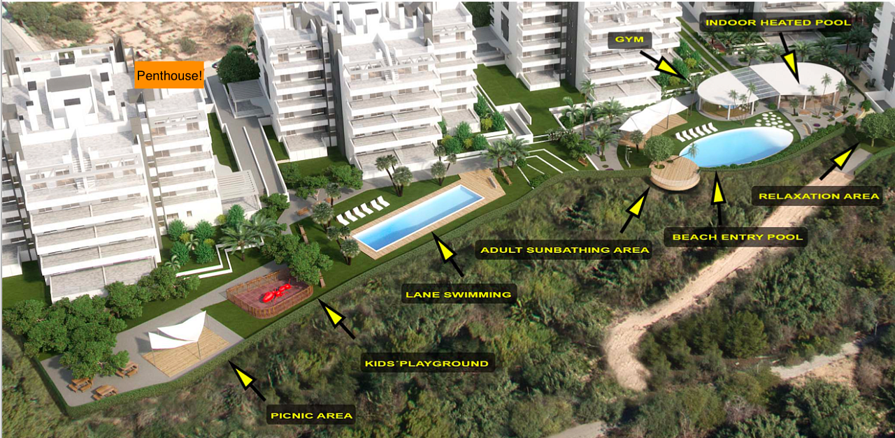 FABULOUS PENTHOUSE WITH SPA AND COMMUNITY GIM Modern style complex with apartments with very large terraces and fabulous solariums. Is conceived to enjoy the beach, the sun and the tranquility, close to all services. Designed to enjoy our wonderful Mediterranean climate. You can relax all year round in the spa area with heated pool, sauna and gym. Enjoy the spectacular views of the natural and protected green area from the large balconies or from the large floating platform located in the pool area. For the more athletic, the complex has a semi-olympic pool. Children can enjoy in the play area or in the beach-type pool. Is located in a privileged area, just 2 kilometers from La Zenia beach, one of the best beaches on the Costa Blanca. In a consolidated area and with all the services at hand such as supermarkets, pharmacies, public transport, banks, with good connections and just 500 meters from the entrance to the AP-7 motorway. The Zenia Boulevard shopping center, one of the largest in the region with more than 80,000 square meters, is only 1 kilometer away. Three of the best 18-hole golf courses such as the Real Club de Golf de Campoamor, Golf Villamartín and Las Ramblas de Campoamor are located just 2 kilometers from the complex.