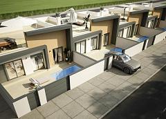 New Build Townhouses with Private Pool in Avileses, Murcia Modern Single Level Homes in a Peaceful Murcia Location This new residential development consists of five contemporary townhouses located in Avileses, a traditional Spanish village in the Region of Murcia. Known for its relaxed atmosphere and local charm, Avileses offers daily services, sports facilities and an authentic Mediterranean lifestyle while remaining close to golf resorts, beaches and major transport connections. The area is ideal for permanent living, holiday use or investment thanks to its excellent value and growing demand. Thoughtful Layout Designed for Outdoor Living All homes are built on one level and have been designed to enjoy sunshine throughout the year. Each property features a front terrace, a private rear patio and a spacious rooftop solarium, creating multiple outdoor areas for relaxation and entertaining. The private garden includes a swimming pool and on plot parking, ensuring comfort and privacy for every homeowner. Inside, the homes offer a practical and bright layout with three bedrooms and two bathrooms, including a master bedroom with en suite bathroom. The open and functional design enhances natural light and creates a welcoming living environment suitable for families and couples alike. High Quality Specifications and Modern Comfort These new build townhouses are delivered with high quality finishes and modern installations. The kitchens are fully furnished and equipped with Balay appliances including ceramic hob, oven, microwave, extractor hood, integrated fridge and integrated dishwasher. Bathrooms are fully fitted with suspended toilets, vanity units, mirrors, rain shower columns and shower screens. Additional features include motorized shutters on front facing windows, fitted wardrobes with drawers, LED interior lighting in kitchen, living area, hallway and bathrooms, and integrated LED lighting in garden walls and solarium. Hot water is produced by an aerothermal system, and pre installation for ducted air conditioning is included to ensure year round comfort. Excellent Location Near Golf, Beaches and Airport Avileses is surrounded by several renowned golf courses, making it an excellent choice for golf enthusiasts. La Torre Golf Resort is approximately 6 km away and Hacienda Riquelme Golf is around 7 km from the development. The Mar Menor and Mediterranean beaches are located about 15 km away, offering a wide range of water sports and leisure activities. Murcia International Airport is just 20 km away, while the city of Murcia is approximately 25 km, providing shopping, culture and gastronomy. A Smart Investment on the Costa Calida With modern design, private pools and an excellent location close to golf courses and beaches, these new build townhouses in Avileses offer outstanding value and lifestyle potential. Contact us today to receive more information or to arrange a viewing and secure your new home in Murcia. 271