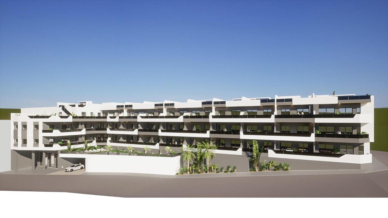 COMPLEJO RESIDENCIAL DE OBRA NUEVA EN BENIJOFAR Complejo residencial de obra nueva en la tranquila zona de Benijofar. Residencial compuesto por 35 apartamentos y áticos de 2, 3 y 4 dormitorios y 2 baños, cocina americana con el salón, armarios empotrados, terrazas. Los áticos disponen además de un amplio solarium privado donde poder disfrutar de las preciosas puestas de sol del verano. Nueva construcción complejo residencial cuenta con una amplia zona verde con piscina. Parking y trastero opcionales en planta sótano con acceso directo a las viviendas. Benijofar es un pueblo encantador con una encantadora iglesia y todos los servicios como supermercados, farmacias, bancos, restaurantes y parque natural situado muy cerca de las villas. Hay varios campos de golf cerca, así como parques acuáticos en las cercanas Rojales y Torrevieja. Las mejores playas de Guardamar están a sólo 10 minutos en coche con más de 11 km de dunas de arena blanca y aguas cristalinas. Benijófar situado a pocos minutos de la N-332 y AP-7. A tan solo 30 minutos del aeropuerto de Alicante, a 10 minutos de las playas de Guardamar y Torrevieja. 271