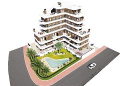 Apartamentos de nueva construcción en Guardamar del Segura: vida moderna a solo 1,4 km de la playa Descubra una nueva promoción residencial en Guardamar del Segura, Alicante, que ofrece solo 19 viviendas exclusivas y modernas diseñadas para una vida cómoda y contemporánea en la Costa Blanca. Con una ubicación ideal a solo 1,4 km de la playa y a pocos pasos del centro de la ciudad, esta promoción combina estilo, funcionalidad y una ubicación privilegiada en la costa. Proyecto residencial exclusivo con disponibilidad limitada Esta urbanización boutique cuenta con apartamentos de 2 y 3 dormitorios con diferentes distribuciones para adaptarse a las distintas necesidades: Apartamentos en planta baja con amplias terrazas privadas. Apartamentos en planta intermedia con amplios balcones o terrazas abiertas. Un espectacular ático con solárium privado y piscina Cada propiedad presenta elegantes líneas arquitectónicas curvas, barandillas de cristal y acabados modernos, ideales tanto para residir todo el año como para disfrutar de unas lujosas vacaciones. Acabados de primera calidad y características de eficiencia energética Diseñadas para ofrecer comodidad y sostenibilidad, cada vivienda incluye: Puerta de entrada reforzada para mayor seguridad Cocina totalmente amueblada con electrodomésticos incluidos Sistema aerotérmico de bajo consumo para agua caliente Plaza de aparcamiento privada incluida en el precio El edificio también cuenta con una piscina comunitaria y zonas ajardinadas, perfectas para disfrutar del soleado clima mediterráneo. Ubicación privilegiada en Guardamar del Segura Situada en una zona bien comunicada y animada de Guardamar, esta promoción ofrece fácil acceso a la naturaleza, las playas y los servicios esenciales. Los residentes disfrutan de la proximidad a supermercados, restaurantes, centros médicos, parques y el famoso bosque de pinos y dunas de la localidad. Distancias clave: Centro de Guardamar: 1 km Playa más cercana: 1,4 km Puerto deportivo: 2 km Parque Reina Sofía: 1,5 km Golf La Marquesa (Ciudad Quesada): 9 km Centro comercial Habaneras (Torrevieja): 13 km Aeropuerto de Alicante-Elche: 33 km Las conexiones de transporte público incluyen líneas de autobús directas a Alicante y Torrevieja, lo que ofrece un fácil acceso sin necesidad de coche. Asegúrese su apartamento en la Costa Blanca Tanto si busca una residencia permanente, una propiedad vacacional o una inversión inteligente, esta nueva promoción en Guardamar del Segura es la elección perfecta. Póngase en contacto con nosotros hoy mismo para obtener más información o reservar su nueva casa junto al mar. 271