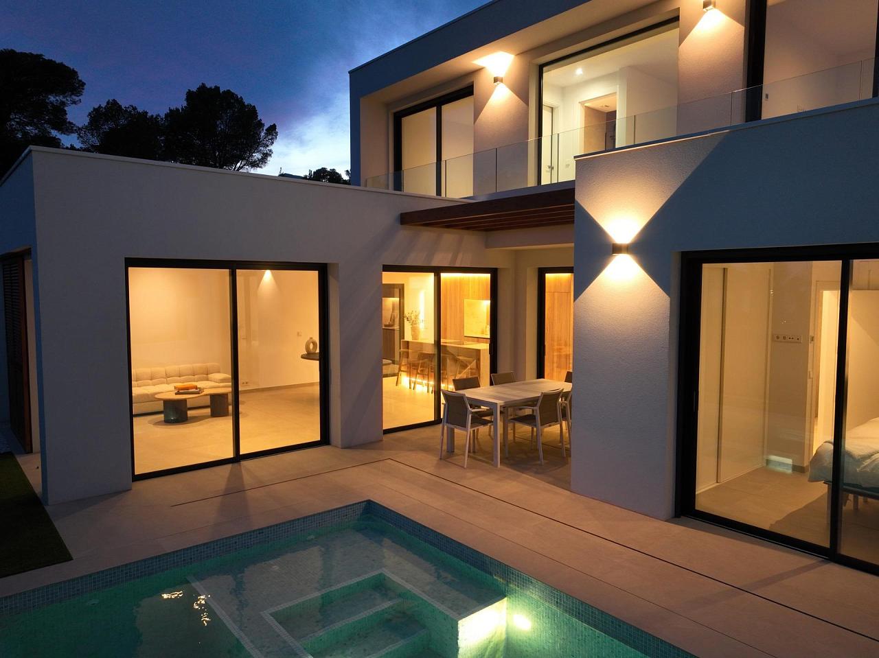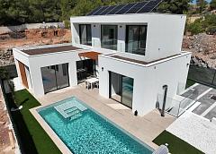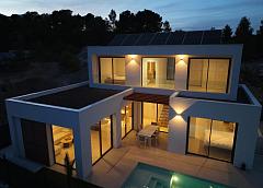 VILLAS DE OBRA NUEVA EN ALFAZ DEL PI Urbanización privada de Obra Nueva de 12 villas con piscina y jardín propios, situada en una de las zonas más exclusivas de la Costa Blanca, Alfaz del Pí. Urbanización exclusiva de Obra Nueva que le ofrece un entorno único, familiar y natural en una zona privilegiada cerca de todos los servicios necesarios para ofrecerle tranquilidad y bienestar. El diseño único de su estructura de madera, de líneas rectas y mediterráneas, le confiere la calidez y armonía necesarias para hacerte sentir parte de la naturaleza a la vez que optimiza los recursos, haciendo de las villas espacios más sostenibles y eficientes. Una de nuestras directrices a la hora de crear nuestra urbanización fue la integración de nuestras villas en la naturaleza, teniendo en cuenta la zona verde circundante, con la intención de aumentar su calidad de vida y maximizar la influencia positiva sobre la misma. Casas diseñadas teniendo en cuenta hasta el más mínimo detalle, su envolvente de madera, su pérgola bioclimática, el sistema de placas solares y las eficientes y elegantes mallorquinas le ofrecen la opción más exclusiva de vivienda sostenible. Espacios abiertos llenos de luz, gran amplitud y sin barreras visuales, que proporcionan una sensación de espacio infinito. Grandes ventanales con acceso directo a la zona de piscina y jardín. El amplio salón con cocina abierta lo convierte en el lugar ideal para compartir con familiares y amigos. Muebles de cocina de alta calidad con encimeras de porcelana y electrodomésticos de alta eficiencia energética. Diseñado con el objetivo de proporcionar la máxima armonía y equilibrio necesarios para una perfecta recuperación de cuerpo y mente. Con grandes ventanales de suelo a techo, el dormitorio principal tiene acceso directo a la piscina y a la zona ajardinada, que aportan el plus de confort y relax tan necesario para un buen descanso. Los dormitorios de la planta superior de la villa han sido diseñados para aprovechar al máximo las asombrosas vistas al mar Mediterráneo y a la hermosa Sierra Helada. Diseñados para crear espacios refugio. Los tonos naturales y cálidos son los protagonistas, proporcionando una sensación de pureza en el ambiente, optimizando los momentos de disfrute y relax y la desconexión del mundo exterior. La ducha italiana, la grifería con sistema de reducción de consumo de agua, el mobiliario con lavabos encastrados y los sanitarios suspendidos conforman un espacio funcional posicionándonos a la vanguardia del sector. Proyecto único e innovador basado en el mínimo impacto medioambiental promoviendo menores emisiones de CO2 en su construcción, mínimo consumo energético y un uso más sostenible y eficiente de los recursos. El proyecto da un paso importante hacia la concienciación medioambiental. La madera utilizada en todo el armazón de nuestras villas procede de bosques cuya tala está autorizada y garantiza la reforestación, la sostenibilidad y la protección de la biodiversidad. El uso de este material en la construcción de su nuevo hogar conlleva una serie de ventajas que repercuten directamente tanto en su bienestar como en la calidad de la construcción. Nuestras viviendas son altamente eficientes desde el punto de vista energético, ofreciendo un mayor aislamiento térmico y aislamiento térmico y acústico, a la vez que mantienen la calidad del aire en el interior de la vivienda y proporcionan una iluminación natural idónea. Los materiales utilizados en su construcción son de alta calidad, duraderos y resistentes al fuego y a la humedad. La promoción de viviendas está situada en la conocida zona de Escandinavia de Alfáz del Pi. A escasos kilómetros se encuentra la playa del Albir, donde sus aguas cristalinas y la Sierra Helada con un sin fin de rutas y actividades hace que sea considerada una de las mejores zonas de la Costa Blanca. Muy cerca de las Villas se encuentra el núcleo urbano de Alfaz del Pí, que reúne todos los requisitos necesarios para su nuevo hogar, como el extraordinario clima, con más de 300 días de sol al año, su oferta gastronómica, la calidad de sus servicios y la magnífica relación con el medio ambiente. Además, cuenta con dos prestigiosos colegios noruegos y un club escandinavo que ya existe desde hace medio siglo.
