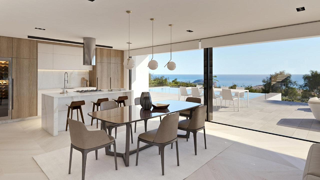 VILLA DE LUJO DE OBRA NUEVA EN CUMBRE DEL SOL Villa moderna de obra nueva situada en la urbanización Cumbre del Sol, una exclusiva zona de grandes villas de lujo con elegantes vistas al mar Mediterráneo. Villa está diseñado para el disfrute y el ocio. Todos los extras de este moderno chalet de lujo se encuentran en esta parcela de más de 1.300 metros cuadrados. Una villa con 3 dormitorios, 5 baños y aparcamiento para 4 coches: 2 plazas bajo un porche cubierto y 2 en un garaje cerrado. El dormitorio principal tiene baño en suite y un amplio vestidor, su porche permite admirar el mar Mediterráneo en toda su belleza. Los otros dos dormitorios comparten una maravillosa terraza y una zona de sobra, que se puede utilizar para el recreo o como oficina. Ambos disponen de cuarto de baño en suite. Para mayor comodidad, el salón-comedor y la cocina se encuentran en la misma planta. La cocina conecta con el salón a través de una isla, por lo que nada le separa de sus amigos. Grandes ventanales conducen al solarium con piscina infinita que se funde con el mar. La exclusividad de esta moderna villa reside en su planta inferior, dedicada a entretener a toda la familia. Contiene un gimnasio privado con baño y sauna, así como una sala de cine. Todo ello con un porche bajo el que podrá relajarse rodeado de la tranquilidad del mar. Si busca un hogar diferente, Villa le ofrece el espacio adicional que hará que su día a día sea especial. 271