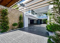 VILLA DE LUJO EN FINESTRAT CON VISTAS AL MAR Villa de lujo de nueva construcción con vistas al mar en Sierra Cortina, Finestrat. Llegando a la Urbanización hay un muro de piedra natural con una altura de 7 metros y las puertas automáticas de acceso al chalet llegando al garaje cubierto a nivel de calle con doble altura, luz natural y jardín con palmeras de diferentes alturas de 180 m2, una sala acristalada de 78 m2 con ascensor, escalera interior, guardarropa y espacio suficiente para poner sillones, convertir este espacio en un despacho o simplemente una sala de espera para visitas. La siguiente planta de 190 m2 de espacio cerrado está situada por debajo del nivel de la parcela pero 3 metros por encima del nivel de la calle y por tanto con luz natural. Se puede acceder a ella por el ascensor o la escalera interior del chalet, o por la escalera exterior del garaje, en este último caso sólo se puede acceder a los pasillos exteriores, al cuarto de instalaciones o a la puerta principal de esta planta, realizando así el mantenimiento de la vivienda sin necesidad de entrar dentro de la casa. Dentro de esta planta encontraremos 4 amplios dormitorios, salón con patio inglés de 17 m2 con la escalera de acceso a la parcela, lavadero, 2 baños, pasillos exteriores de 40 m2 y cuarto de instalaciones. Cuando subimos a la planta principal por 3 accesos vemos un salón de 130 m2 con doble luz, cocina abierta, aseo de invitados, vistas panorámicas al mar, y piscina de 54 m2 de laminado, un precioso jardín y 2 amplias terrazas cubiertas. A la planta de dormitorios accedemos por ascensor o escalera interior donde veremos un Dormitorio Principal de más de 50 m2 con baño en-suite, vestidor y terraza, dos dormitorios de unos 20 m2 cada uno, un baño y la terraza para estos dormitorios. Villa está equipada con Led exterior e interior, calefacción por suelo radiante, domótica, cristales Gamma de alta, aire acondicionado centralizado, persianas automáticas, techos altos y mucho más: Salón- 95 m2 Dormitorios- 8 (principal 52 m2 y secundario 20 m2) Baños- 5 Parcela- 890 м2 Construido- 998 м2 Piscina- 12 X 5 Cuatro Plantas Jardín (20 m2) - totalmente terminado con sistema de riego automático Ascensor (Otis) dentro de la casa Calefacción por suelo radiante Domótica (control de aire acondicionado, suelo radiante, iluminación interior y exterior, persianas) Persianas eléctricas Luces exteriores e interiores marca Siemens Techos altos de hasta 3,20 m de altura Impresionantes vistas al mar Una planta para invitados Calefacción aerotérmica Cocina totalmente equipada con isla Armarios empotrados Suelo de gres porcelánico Pared con piedra natural tallada a mano Garaje para 4 vehículos con puertas automáticas 160 m2 + hall de entrada 78 m2 Parking abierto 37 Chalet situado en el complejo Sierra Cortina, junto a dos campos de golf, parques temáticos, un gran centro comercial y a pocos minutos de las playas de Benidorm. Finestrat situado en la comarca de la Marina Baixa de la Costa Blanca, cerca de la vecina Benidorm y a unos 40 kilómetros de la ciudad de Alicante y del aeropuerto internacional. El pueblo está situado en la ladera del Puig Campana y ofrece hermosas vistas de las montañas, la costa y el mar Mediterráneo. 271