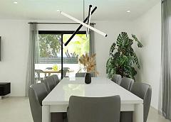 VILLAS DE OBRA NUEVA EN MONFORTE DEL CID Villas de obra nueva en Monforte del Cid, con el campo de golf a sólo 3 minutos de casa y justo al lado de las ciudades de Alicante y Elche, donde encontrará una amplia oferta cultural, gastronómica, de ocio y por supuesto de costa. Las playas de arena dorada del Mediterráneo a un paso de tu nuevo hogar, un espacio donde disfrutar de días de sol y mar en cualquier momento. Villas situadas a 3 minutos del centro deportivo del campo de golf Alenda Golf, lo que la convierte en la ubicación perfecta para disfrutar de la paz de una urbanización tranquila pero tener todos los servicios al lado de casa (A tan sólo 12 minutos del Aeropuerto de Alicante-Elche). La urbanización es una comunidad que reúne lo mejor de la vida moderna y la tranquilidad del entorno natural (Sin gastos de comunidad). Descubra la elegancia y el confort de este precioso chalet independiente de 108m2 o 128m2 (posibilidad de dos tamaños de vivienda), diseñado para ofrecerle un estilo de vida excepcional, todo en planta baja. Situada en la prestigiosa Urbanización, esta propiedad le ofrece una experiencia de vida única y de calidad. En parcelas desde 618m2, proporcionándole un amplio espacio para disfrutar tanto del interior como del exterior. Disfrute de la privacidad que le ofrece este chalet independiente, donde podrá relajarse en su propio jardín, crear un oasis de tranquilidad, o incluso añadir una piscina para disfrutar de los cálidos días de verano. La casa se distribuye en dos grandes zonas: Zona de día: Donde encontramos un amplio salón comedor con cocina abierta tipo office (muebles de cocina incluidos) que conecta con el amplio y moderno porche a través de sus dos grandes ventanales, dando paso a la zona exterior ajardinada y por qué no... a la piscina. La luz inunda cada rincón gracias a los grandes ventanales del salón, que se abren al porche, un espacio moderno y funcional que invita a disfrutar al máximo del aire libre. Imagina pasar las tardes con la familia y los amigos, rodeado de un entorno sereno y natural. Como espacio extra, cuenta con una zona de lavandería estratégicamente situada en la distribución de la vivienda donde será muy fácilmente accesible desde cualquier punto de la casa. Zona de noche o descanso: En esta zona encontramos 3 dormitorios. El dormitorio principal cuenta con un amplio vestidor y baño en suite. Además, un segundo baño para dar servicio al resto de dormitorios y vivienda. Aquí no sólo encontrará una comunidad residencial, sino un lugar donde la naturaleza y la elegancia se entrelazan para proporcionarle un estilo de vida inigualable. Ya sea para establecer su residencia permanente, para disfrutar de una casa de vacaciones o si desea invertir en su futuro, esta villa es perfecta para usted. Urbanización privada cercana a las principales ciudades de la provincia de Alicante, a 15 minutos en coche de Elche y Alicante, así como del aeropuerto y de las mejores playas. La urbanización se encuentra en un entorno tranquilo cerca del campo de golf Alenda en Monforte del Cid. 271