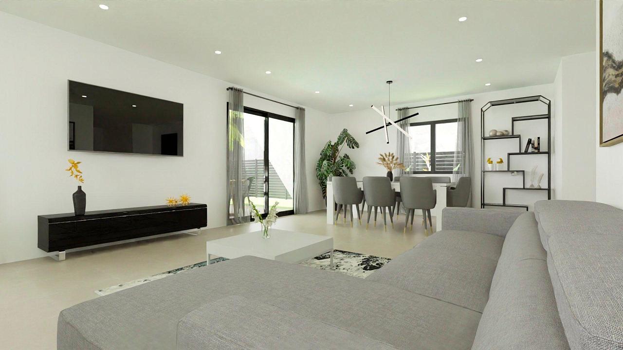 VILLAS DE OBRA NUEVA EN MONFORTE DEL CID Villas de obra nueva en Monforte del Cid, con el campo de golf a sólo 3 minutos de casa y justo al lado de las ciudades de Alicante y Elche, donde encontrará una amplia oferta cultural, gastronómica, de ocio y por supuesto de costa. Las playas de arena dorada del Mediterráneo a un paso de tu nuevo hogar, un espacio donde disfrutar de días de sol y mar en cualquier momento. Villas situadas a 3 minutos del centro deportivo del campo de golf Alenda Golf, lo que la convierte en la ubicación perfecta para disfrutar de la paz de una urbanización tranquila pero tener todos los servicios al lado de casa (A tan sólo 12 minutos del Aeropuerto de Alicante-Elche). La urbanización es una comunidad que reúne lo mejor de la vida moderna y la tranquilidad del entorno natural (Sin gastos de comunidad). Descubra la elegancia y el confort de este precioso chalet independiente de 108m2 o 128m2 (posibilidad de dos tamaños de vivienda), diseñado para ofrecerle un estilo de vida excepcional, todo en planta baja. Situada en la prestigiosa Urbanización, esta propiedad le ofrece una experiencia de vida única y de calidad. En parcelas desde 618m2, proporcionándole un amplio espacio para disfrutar tanto del interior como del exterior. Disfrute de la privacidad que le ofrece este chalet independiente, donde podrá relajarse en su propio jardín, crear un oasis de tranquilidad, o incluso añadir una piscina para disfrutar de los cálidos días de verano. La casa se distribuye en dos grandes zonas: Zona de día: Donde encontramos un amplio salón comedor con cocina abierta tipo office (muebles de cocina incluidos) que conecta con el amplio y moderno porche a través de sus dos grandes ventanales, dando paso a la zona exterior ajardinada y por qué no... a la piscina. La luz inunda cada rincón gracias a los grandes ventanales del salón, que se abren al porche, un espacio moderno y funcional que invita a disfrutar al máximo del aire libre. Imagina pasar las tardes con la familia y los amigos, rodeado de un entorno sereno y natural. Como espacio extra, cuenta con una zona de lavandería estratégicamente situada en la distribución de la vivienda donde será muy fácilmente accesible desde cualquier punto de la casa. Zona de noche o descanso: En esta zona encontramos 3 dormitorios. El dormitorio principal cuenta con un amplio vestidor y baño en suite. Además, un segundo baño para dar servicio al resto de dormitorios y vivienda. Aquí no sólo encontrará una comunidad residencial, sino un lugar donde la naturaleza y la elegancia se entrelazan para proporcionarle un estilo de vida inigualable. Ya sea para establecer su residencia permanente, para disfrutar de una casa de vacaciones o si desea invertir en su futuro, esta villa es perfecta para usted. Urbanización privada cercana a las principales ciudades de la provincia de Alicante, a 15 minutos en coche de Elche y Alicante, así como del aeropuerto y de las mejores playas. La urbanización se encuentra en un entorno tranquilo cerca del campo de golf Alenda en Monforte del Cid. 271