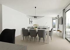 VILLAS DE OBRA NUEVA CON PISCINA PRIVADA EN MONFORTE DEL CID Villas de obra nueva en Monforte del Cid, con el campo de golf a sólo 3 minutos de casa y justo al lado de las ciudades de Alicante y Elche, donde encontrará una amplia oferta cultural, gastronómica, de ocio y por supuesto de costa. Las playas de arena dorada del Mediterráneo a un paso de tu nuevo hogar, un espacio donde disfrutar de días de sol y mar en cualquier momento. Villas situadas a 3 minutos del centro deportivo del campo de golf Alenda Golf, lo que la convierte en la ubicación perfecta para disfrutar de la paz de una urbanización tranquila pero tener todos los servicios al lado de casa (A tan sólo 12 minutos del Aeropuerto de Alicante-Elche). La urbanización es una comunidad que reúne lo mejor de la vida moderna y la tranquilidad del entorno natural (Sin gastos de comunidad). Descubra la elegancia y el confort de este precioso chalet independiente de 129 m2, diseñado para ofrecerle un estilo de vida excepcional, todo en planta baja. Situada en la prestigiosa Urbanización, esta propiedad le ofrece una experiencia de vida única y de calidad. En parcelas desde 834 m2, proporcionándole un amplio espacio para disfrutar tanto del interior como del exterior. Disfrute de la privacidad que le ofrece este chalet independiente, donde podrá relajarse en su propio jardín con piscina privada incluida. La casa se distribuye en dos grandes zonas: Zona de día: Donde encontramos un amplio salón comedor con cocina abierta tipo office (muebles de cocina incluidos) que conecta con el amplio y moderno porche a través de sus dos grandes ventanales, dando paso a la zona exterior ajardinada y por qué no... a la piscina. La luz inunda cada rincón gracias a los grandes ventanales del salón, que se abren al porche, un espacio moderno y funcional que invita a disfrutar al máximo del aire libre. Imagina pasar las tardes con la familia y los amigos, rodeado de un entorno sereno y natural. Como espacio extra, cuenta con una zona de lavandería estratégicamente situada en la distribución de la vivienda donde será muy fácilmente accesible desde cualquier punto de la casa. Zona de noche o descanso: En esta zona encontramos 3 dormitorios. El dormitorio principal cuenta con un amplio vestidor y baño en suite. Además, un segundo baño para dar servicio al resto de dormitorios y vivienda. Aquí no sólo encontrará una comunidad residencial, sino un lugar donde la naturaleza y la elegancia se entrelazan para proporcionarle un estilo de vida inigualable. Ya sea para establecer su residencia permanente, para disfrutar de una casa de vacaciones o si desea invertir en su futuro, esta villa es perfecta para usted. Urbanización privada cercana a las principales ciudades de la provincia de Alicante, a 15 minutos en coche de Elche y Alicante, así como del aeropuerto y de las mejores playas. La urbanización se encuentra en un entorno tranquilo cerca del campo de golf Alenda en Monforte del Cid. 271