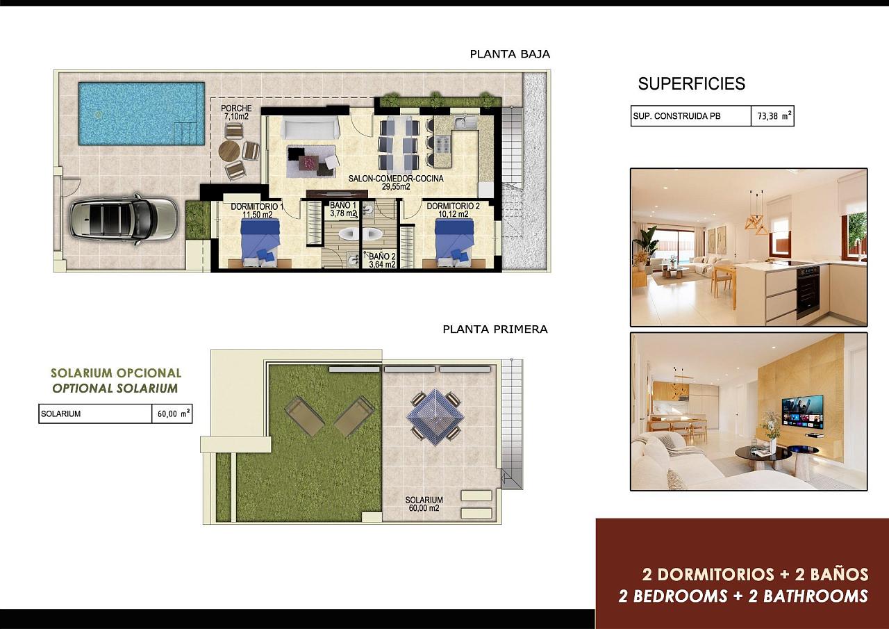 Viviendas de obra nueva en Vistabella Golf Resort, Orihuela Exclusiva promoción residencial en una ubicación privilegiada de golf Descubra esta nueva promoción en Vistabella Golf Resort, que ofrece 48 modernas viviendas con una mezcla perfecta de encanto mediterráneo, calidez y modernidad. Este exclusivo complejo residencial ofrece villas pareadas, adosadas y villas independientes, todas ellas diseñadas para ofrecer comodidad, eficiencia y un estilo de vida exclusivo. Una variedad de opciones de vivienda para satisfacer sus necesidades Esta urbanización ofrece tres tipos de vivienda distintos, cada uno con acabados de alta calidad y características de eficiencia energética: 12 Chalets adosados con 2 dormitorios y 2 baños en una sola planta. Piscina privada y aparcamiento en la parcela. Opción de añadir un solarium con coste adicional. 3 paneles solares fotovoltaicos incluidos. 30 Adosados de 3 dormitorios y 3 baños. Múltiples terrazas y solarium privado. Piscina comunitaria, zona de juegos infantiles y zonas ajardinadas. Sistema de aerotermia para eficiencia energética. 6 Chalets independientes de 4 dormitorios, 3 baños y 1 aseo. Amplias parcelas de más de 300m². Jardín privado, piscina y 8 placas solares fotovoltaicas. Todas las viviendas incluyen: Persianas automáticas. Suelo radiante en baños. Preinstalación de aire acondicionado por conductos. Certificado de Eficiencia Energética A para una vida sostenible. Viva en el corazón de Vistabella Golf Resort Situado entre San Miguel de Salinas y Los Montesinos, en el municipio de Orihuela, Vistabella Golf Resort ofrece un estilo de vida premium en un entorno natural. El campo de golf de 18 hoyos, par 72, se extiende a lo largo de más de 6.000 metros y cuenta con calles onduladas, búnkeres estratégicos y pintorescos lagos, lo que lo convierte en uno de los campos más agradables y desafiantes de la región. La casa club de Vistabella Golf, el restaurante, los bares y las tiendas de la zona están a sólo 5 minutos a pie, lo que garantiza que todos los artículos de primera necesidad estén al alcance de la mano. Excelente conectividad con destinos clave San Miguel de Salinas y Los Montesinos - 5 km (5 minutos en coche). Playas de Bandera Azul de Guardamar - 15 km (15 minutos en coche). Aeropuerto de Alicante - 55 km (35 minutos en coche). Aeropuerto de Corvera Murcia - 65 km (45 minutos en coche). Asegure la casa de sus sueños en la Costa Blanca Tanto si busca una residencia permanente, una casa de vacaciones o una propiedad de inversión, esta promoción ofrece una combinación inmejorable de diseño moderno, lujo y ubicación. Póngase en contacto con nosotros hoy mismo para obtener más información y programar una visita a su futuro hogar en Vistabella Golf Resort.