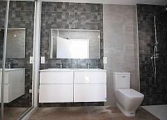 Los baños incluyen columna de ducha, plato de ducha o bañera, muebles de lavabo (varios colores a elegir) con fregaderos, grifos y espejos, además de una gran selección de azulejos de pared.