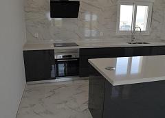 Las cocinas incluyen armarios con puertas y tiradores estándar, según planos facilitados, fregadero y grifo de acero inoxidable, preinstalación para horno, lavavajillas, extractor. Varias encimeras de granito a elegir incluidas en el presupuesto, otras encimeras de piedra disponibles como extras. Electrodomésticos no incluidos.