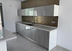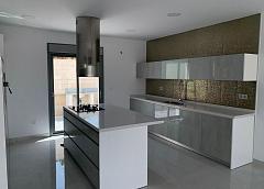 Las cocinas incluyen armarios con puertas y tiradores estándar, según planos facilitados, fregadero y grifo de acero inoxidable, preinstalación para horno, lavavajillas, extractor. Varias encimeras de granito a elegir incluidas en el presupuesto, otras encimeras de piedra disponibles como extras. Electrodomésticos no incluidos.