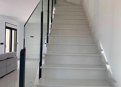 Escalera de mármol (crema, blanco o gris) y barandillas incluidas, más barandillas para el porche delantero.