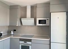 Las cocinas incluyen armarios con puertas y tiradores estándar, según planos facilitados, fregadero y grifo de acero inoxidable, preinstalación para horno, lavavajillas, extractor. Varias encimeras de granito a elegir incluidas en el presupuesto, otras encimeras de piedra disponibles como extras. Electrodomésticos no incluidos.