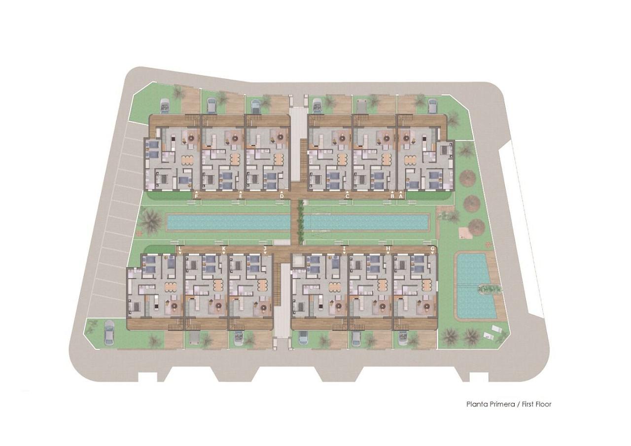 RESIDENCIAL DE OBRA NUEVA EN PILAR DE LA HORADADA Precioso residencial de obra nueva de 24 bungalows, diseñados y pensados para vivir con el máximo confort en un enclave privilegiado rodeado de todo tipo de servicios y a tan solo 4km del mar. Estas viviendas constan de 2 ó 3 dormitorios, 2 baños, cocina americana con el salón, armarios empotrados. Bungalows en planta baja con jardín privado y bungalows en planta alta con solarium privado. Todas las viviendas disponen de plaza de aparcamiento. El complejo residencial dispone de una excelente zona comunitaria con piscina y piscina exterior. Pilar de la Horadada es un típico pueblo español en la parte más meridional de la Costa Blanca. La gran calle principal tiene supermercados, muchas tiendas, restaurantes y bares y algunas plazas encantadoras. Las hermosas playas de Torre de la Horadada y Mil Palmeras con paseo marítimo de arena fina está a sólo 5 minutos. En Pilar de la Horadada también hay una red bien desarrollada de carriles bici y senderos para caminar, y también hay una gran oferta de diversas actividades deportivas. El campo de golf Lo Romero, de 18 hoyos, está a un corto trayecto en coche. Los aeropuertos de Corvera (Murcia) y Alicante se encuentran a 40 y 55 minutos respectivamente.